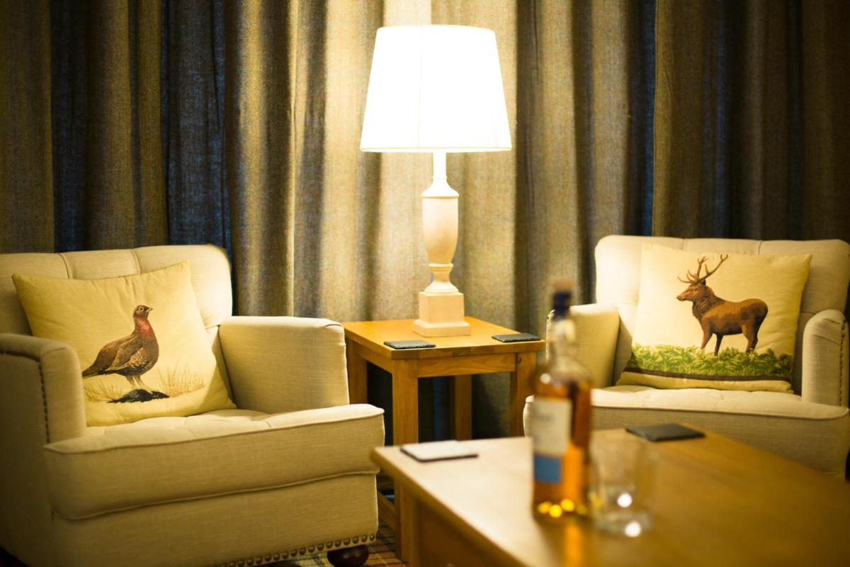 Malgré sa position centrale à Aviemore, la maison conserve une atmosphère tranquille et familiale. Les hôtes peuvent se détendre dans les salons accueillants, peut-être devant un feu crépitant, partageant des récits de leurs aventures dans les Highlands écossais.