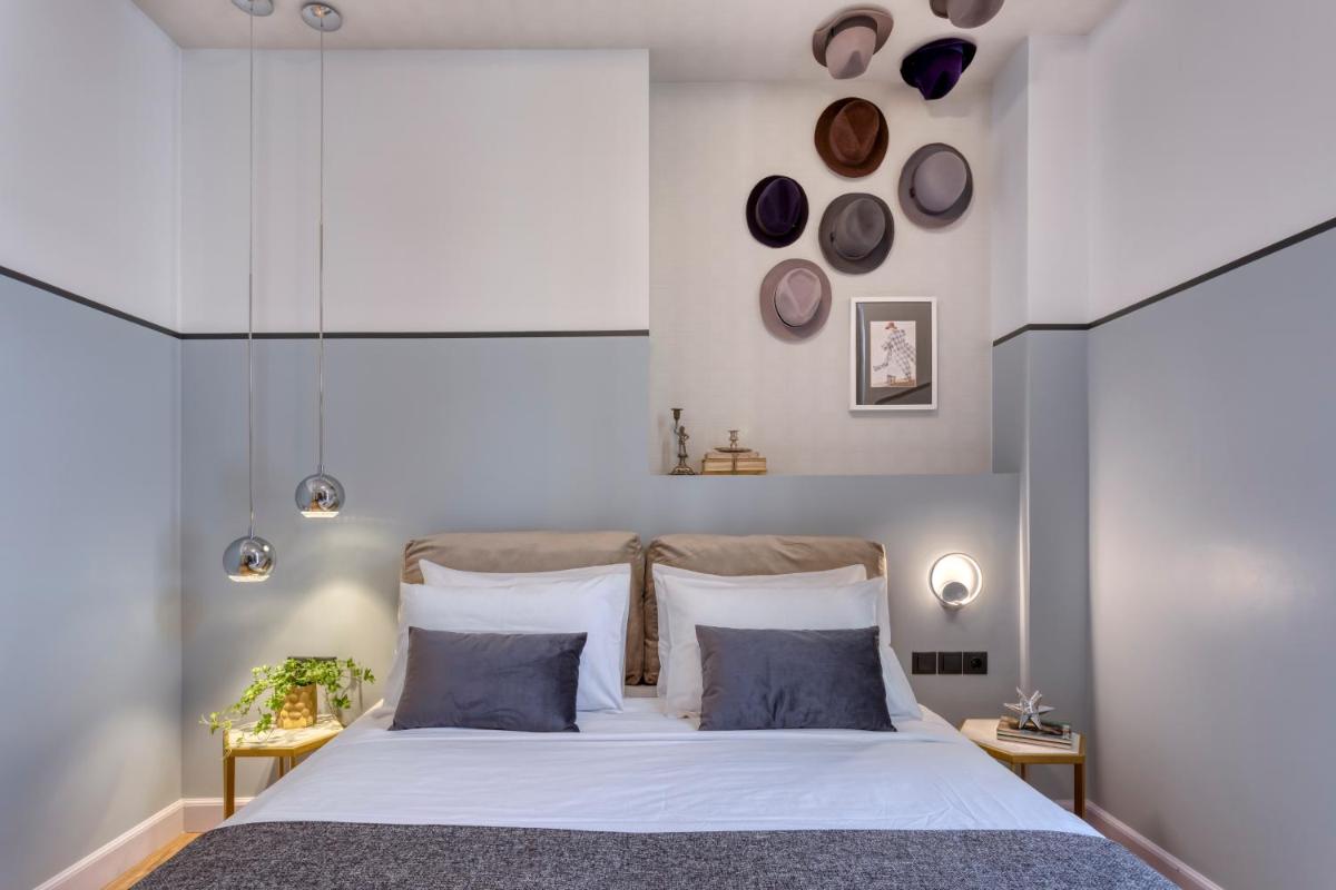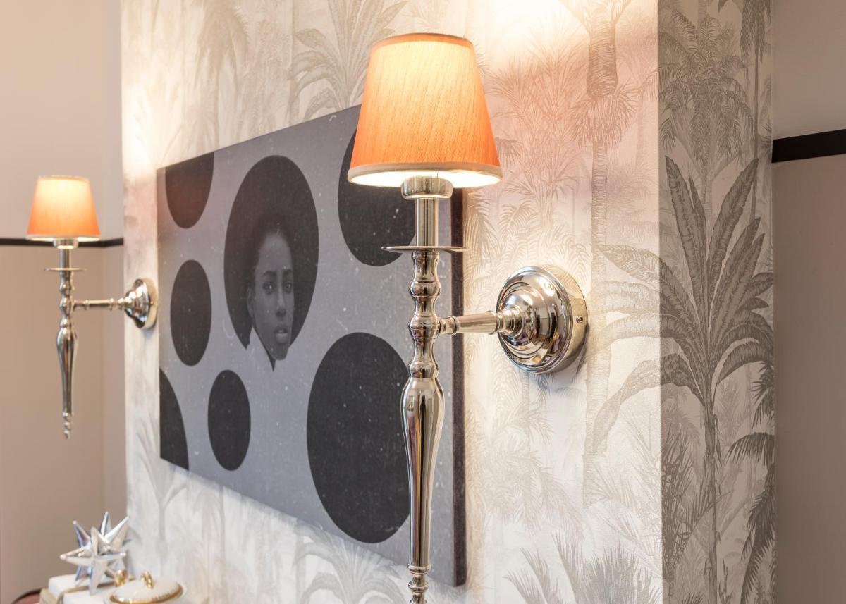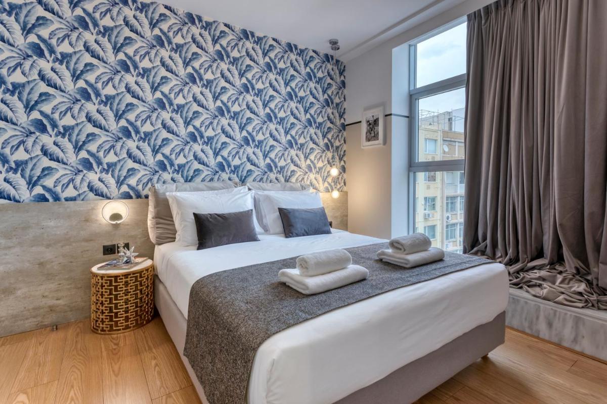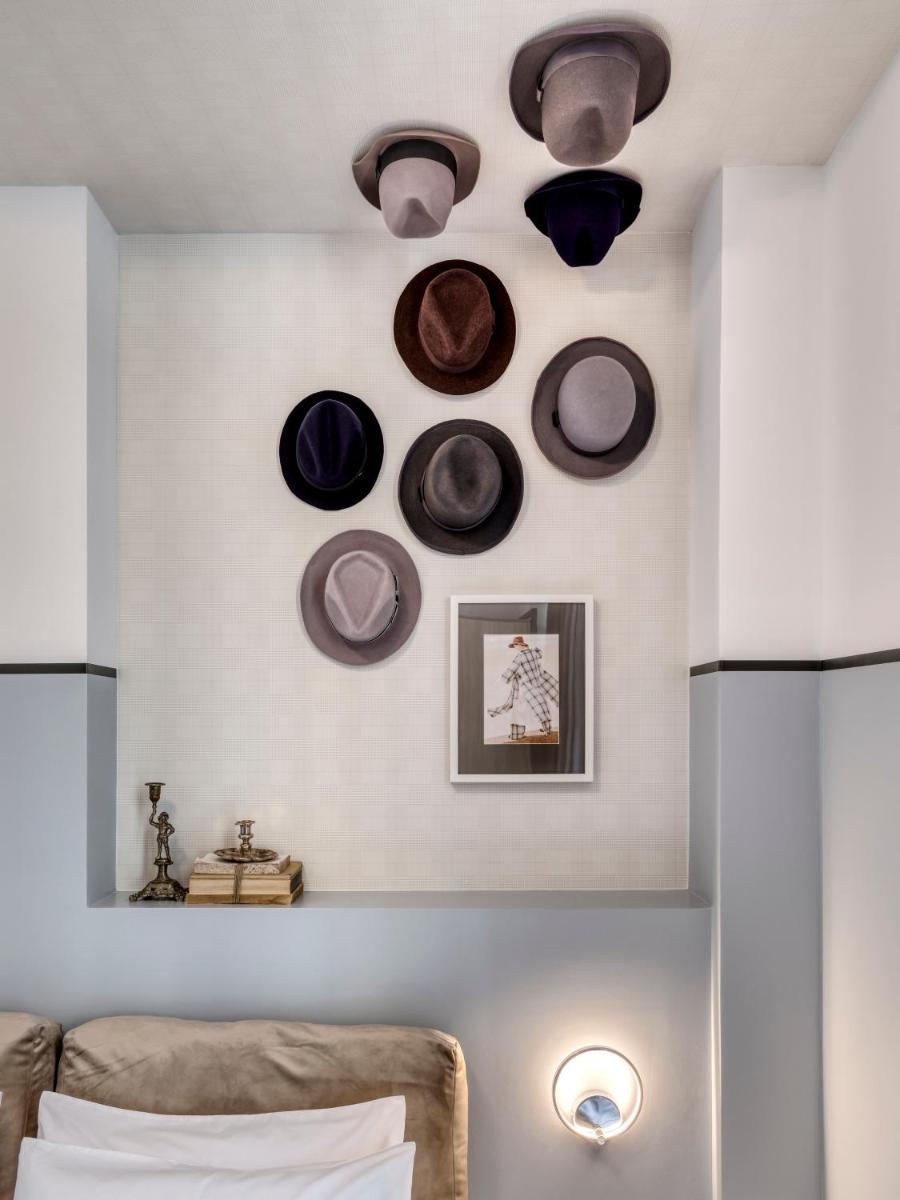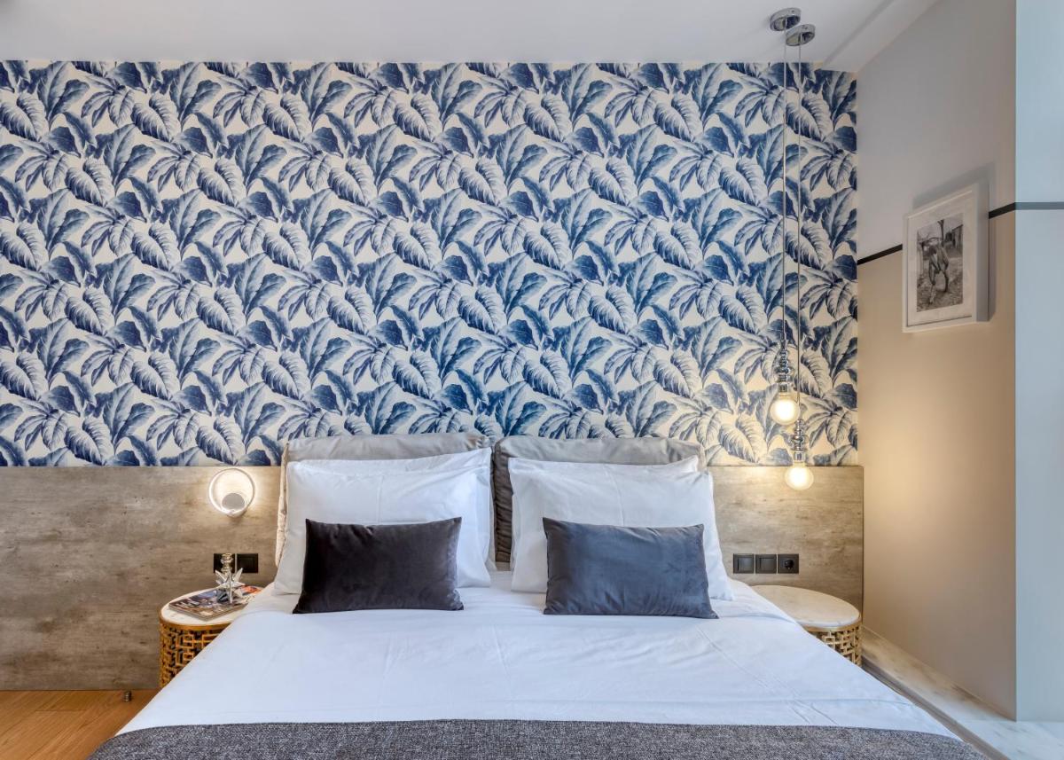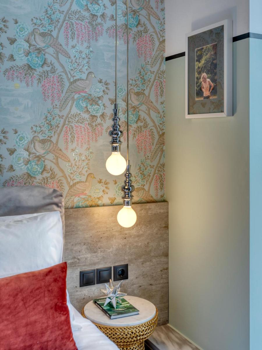 Les intérieurs regorgent de caractère, avec des papiers peints raffinés, des sols en marbre et un mobilier vintage rappelant l'âge d'or du modernisme athénien. Une petite pépite est le sol en damier d'origine qui traverse les espaces communs, créant un contraste visuel fascinant avec les œuvres d'art contemporain exposées. Chaque suite est conçue comme un appartement privé de luxe.