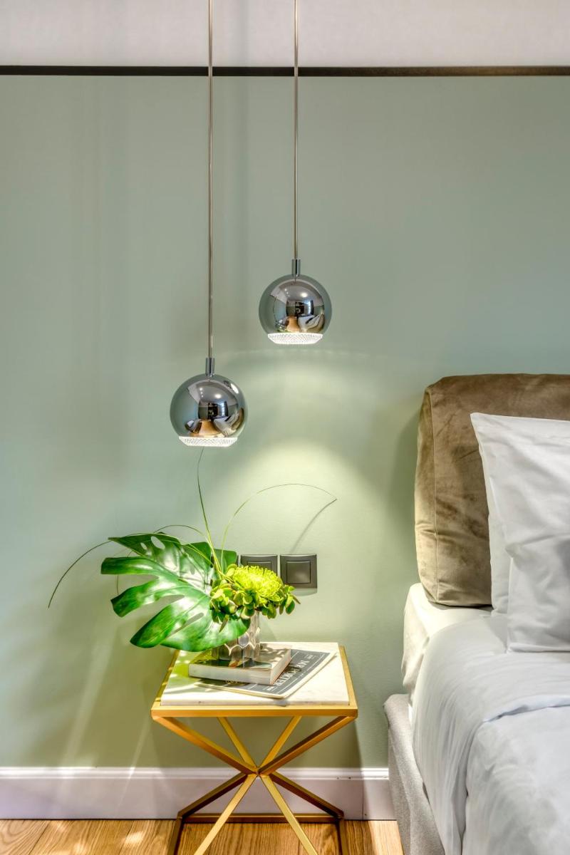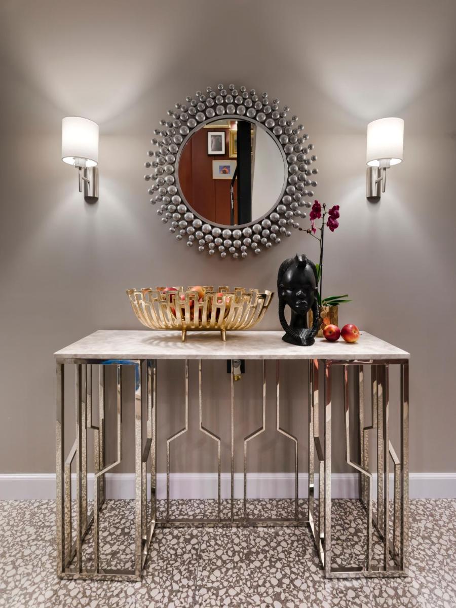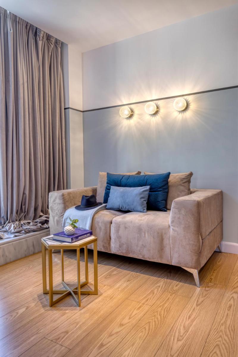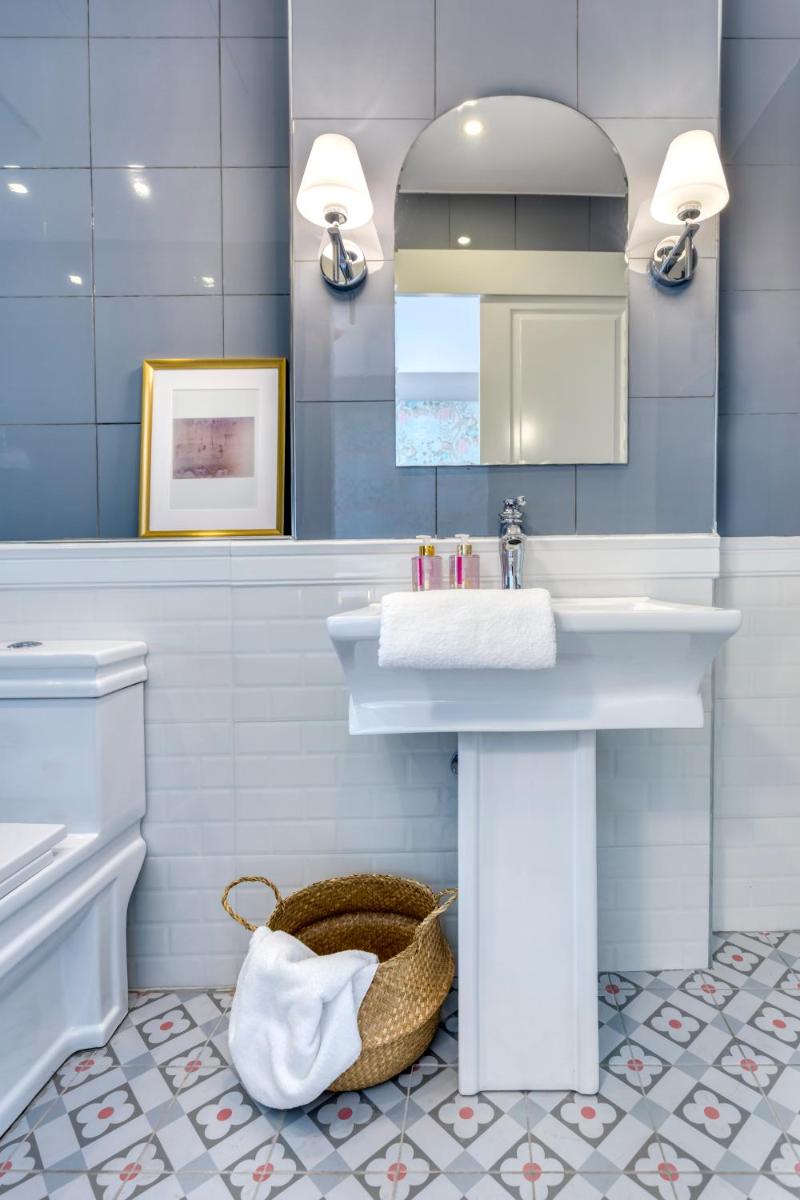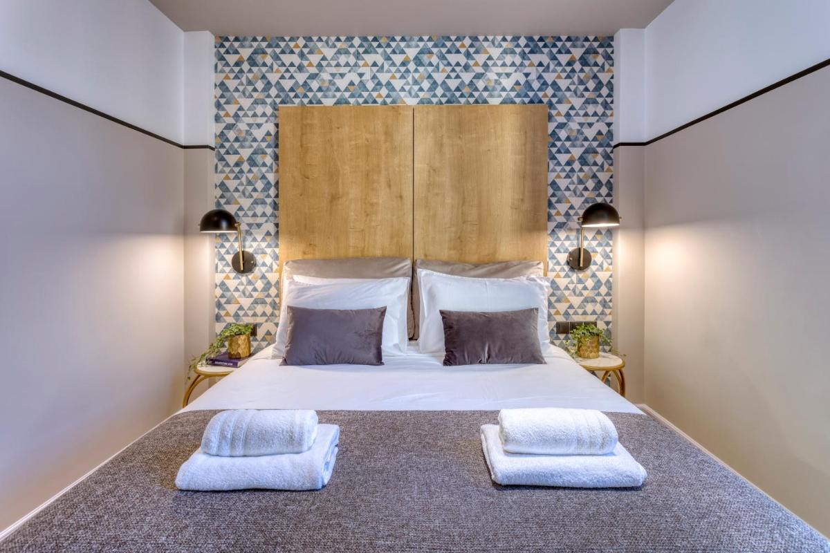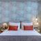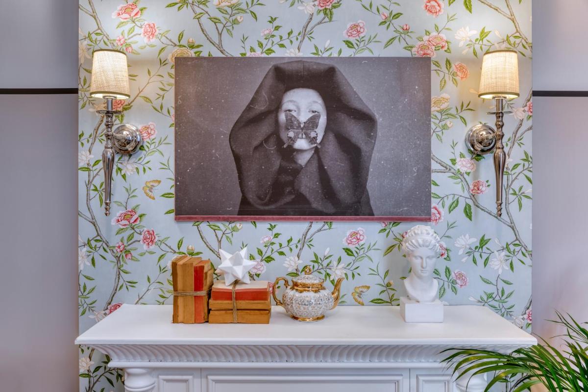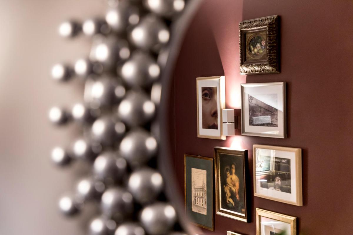 Les intérieurs regorgent de caractère, avec des papiers peints raffinés, des sols en marbre et un mobilier vintage rappelant l'âge d'or du modernisme athénien. Une petite pépite est le sol en damier d'origine qui traverse les espaces communs, créant un contraste visuel fascinant avec les œuvres d'art contemporain exposées. Chaque suite est conçue comme un appartement privé de luxe.