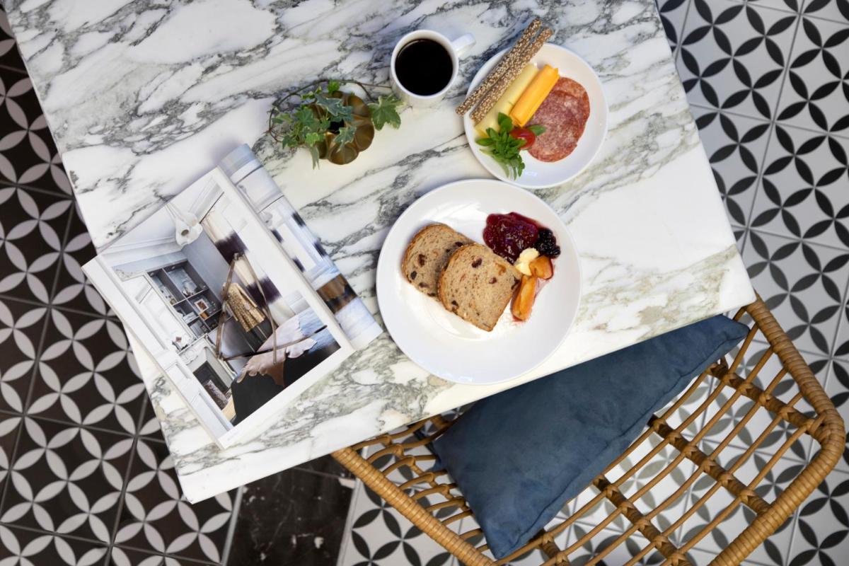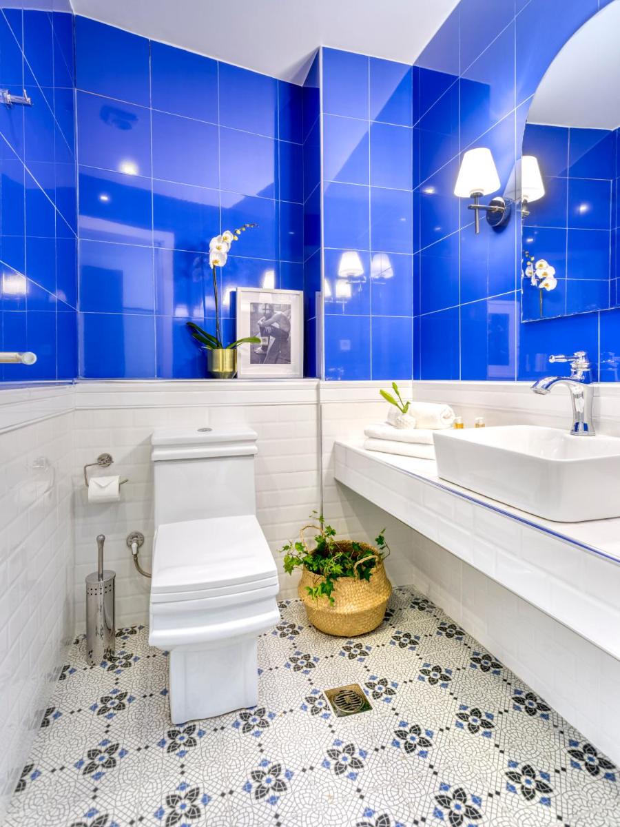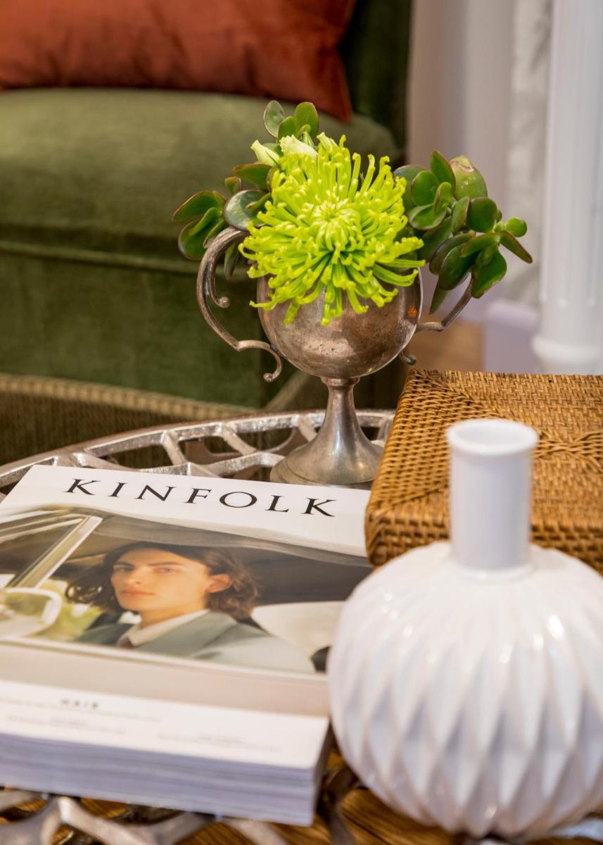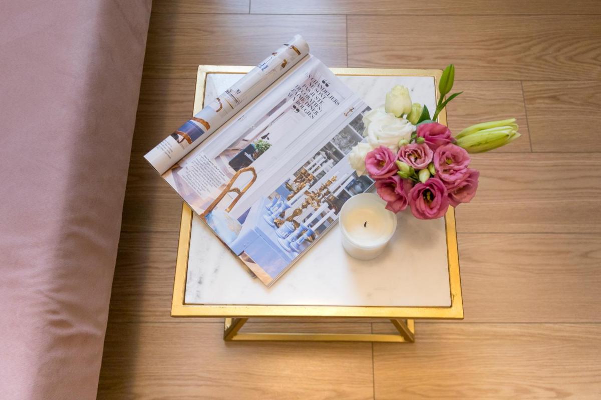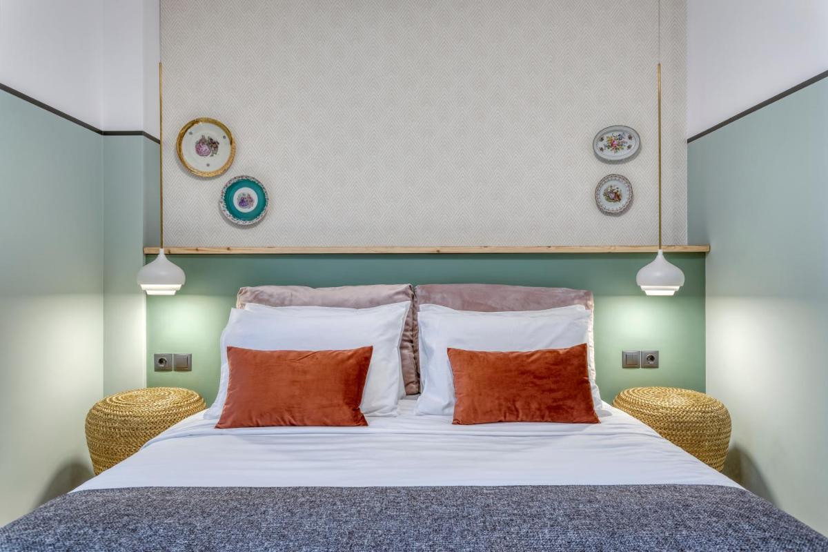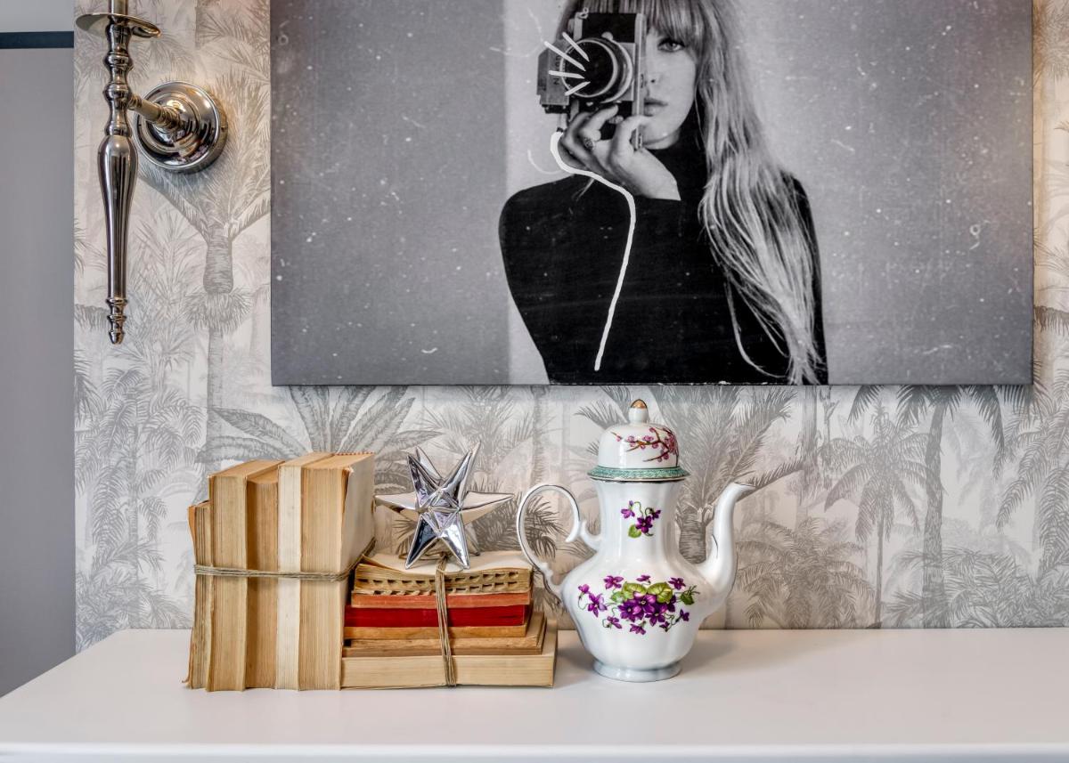 Les intérieurs regorgent de caractère, avec des papiers peints raffinés, des sols en marbre et un mobilier vintage rappelant l'âge d'or du modernisme athénien. Une petite pépite est le sol en damier d'origine qui traverse les espaces communs, créant un contraste visuel fascinant avec les œuvres d'art contemporain exposées. Chaque suite est conçue comme un appartement privé de luxe.