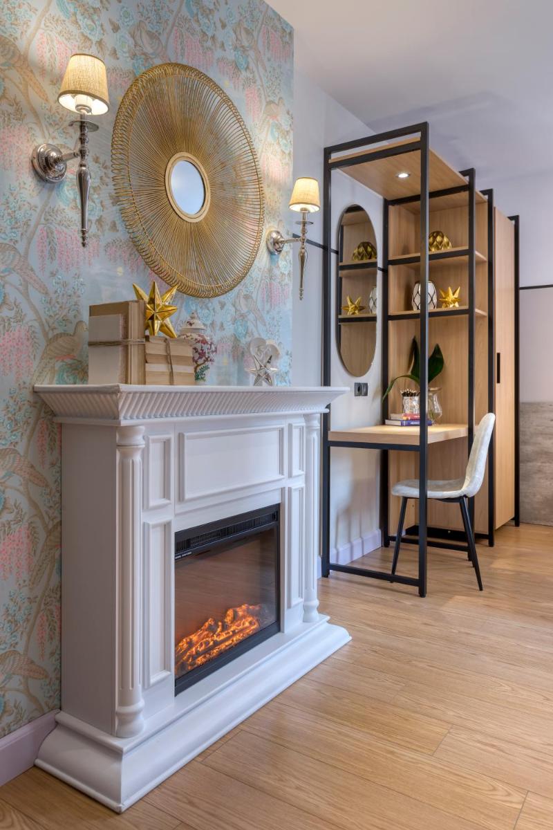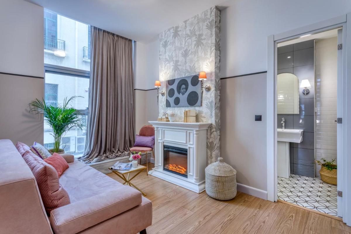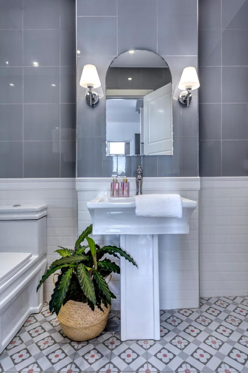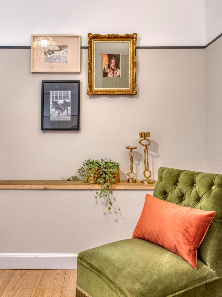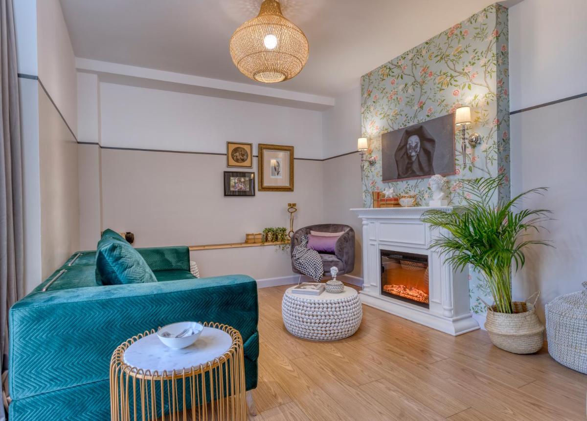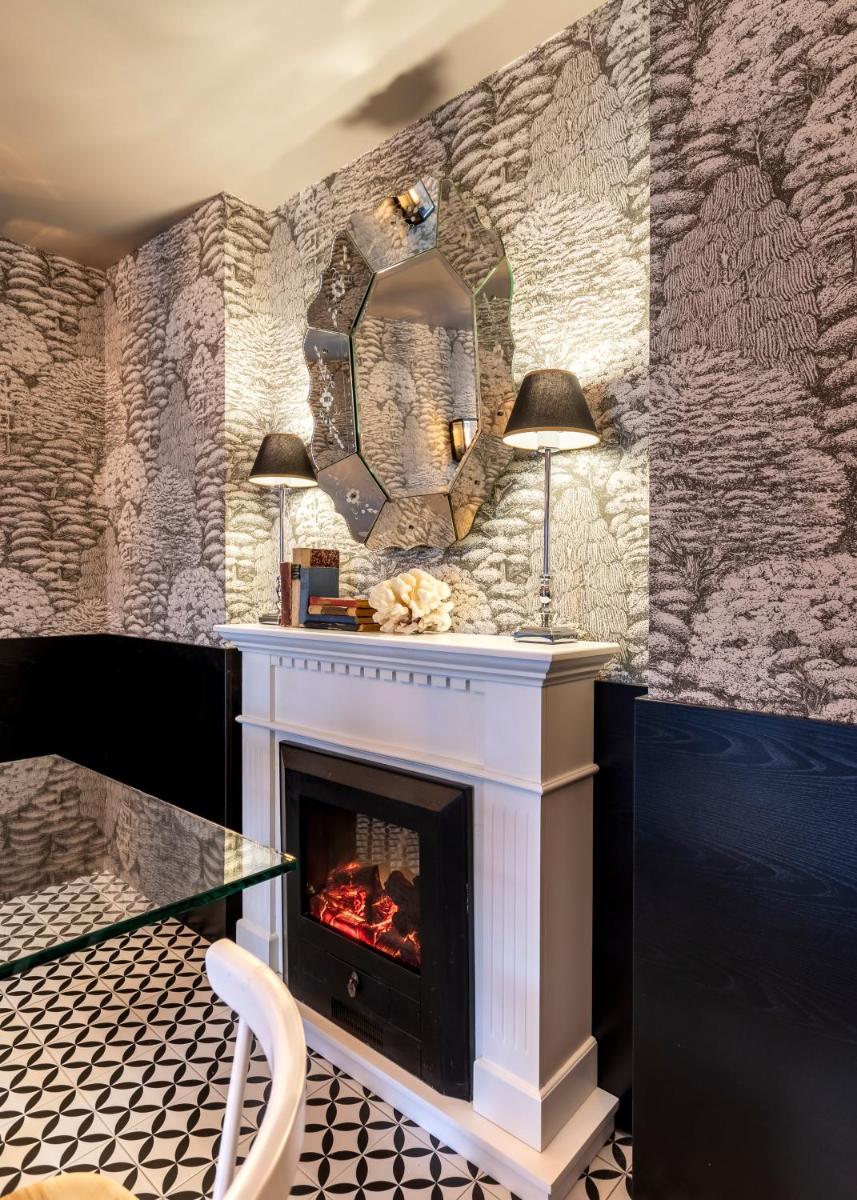 Les intérieurs regorgent de caractère, avec des papiers peints raffinés, des sols en marbre et un mobilier vintage rappelant l'âge d'or du modernisme athénien. Une petite pépite est le sol en damier d'origine qui traverse les espaces communs, créant un contraste visuel fascinant avec les œuvres d'art contemporain exposées. Chaque suite est conçue comme un appartement privé de luxe.