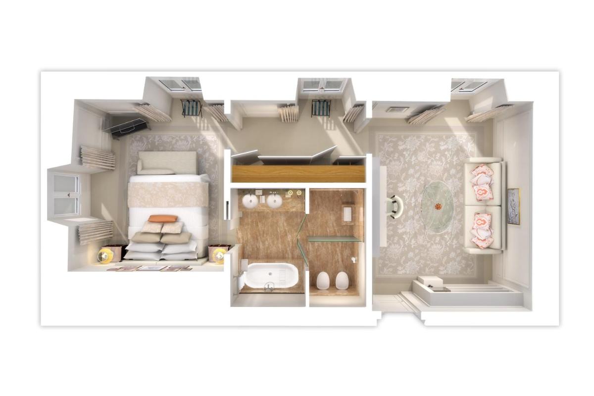 Les 138 chambres et suites de l’hôtel sont des chefs-d’œuvre de design, décorées de fresques originales, de soies précieuses, de velours et de lustres en verre de Murano soufflé à la main. Chaque hébergement est un refuge de luxe, équipé de technologies de pointe et de salles de bains revêtues de marbre. Les catégories les plus exclusives, comme la Suite Royale et la Botany Suite, offrent des espaces somptueux et des vues spectaculaires sur les toits de Rome. Les hôtes bénéficient d’un confort supérieur grâce aux lits signature et à une sélection soignée d’articles de toilette de luxe.
