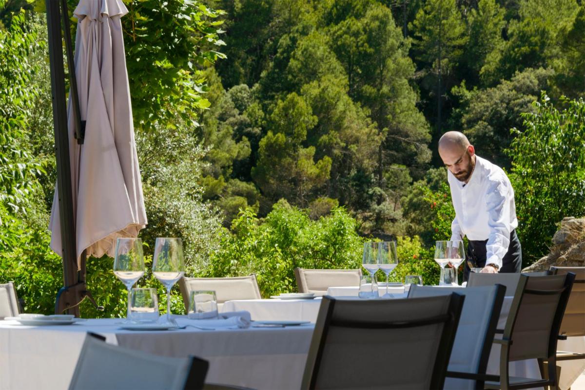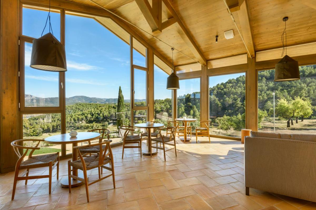 Les hébergements sont extrêmement spacieux et offrent un confort de luxe. De nombreuses chambres et suites s'ouvrent sur de grandes terrasses avec des vues spectaculaires sur la vallée de Matarraña et les vignobles de l'hôtel. L'attention aux détails est maximale, des draps de haute qualité aux salles de bains en marbre, assurant une expérience de repos et de contemplation inégalée.