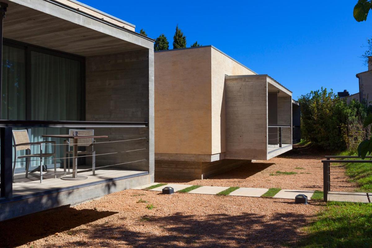 Le design de l'hôtel est un exemple réussi d'intégration entre le patrimoine historique (les épais murs en pierre et les arches du moulin) et l'architecture contemporaine. Les chambres sont lumineuses et minimalistes, meublées avec un goût nordique et fonctionnel, avec de grandes fenêtres qui s'ouvrent sur les jardins environnants, garantissant une paix et un silence absolus.