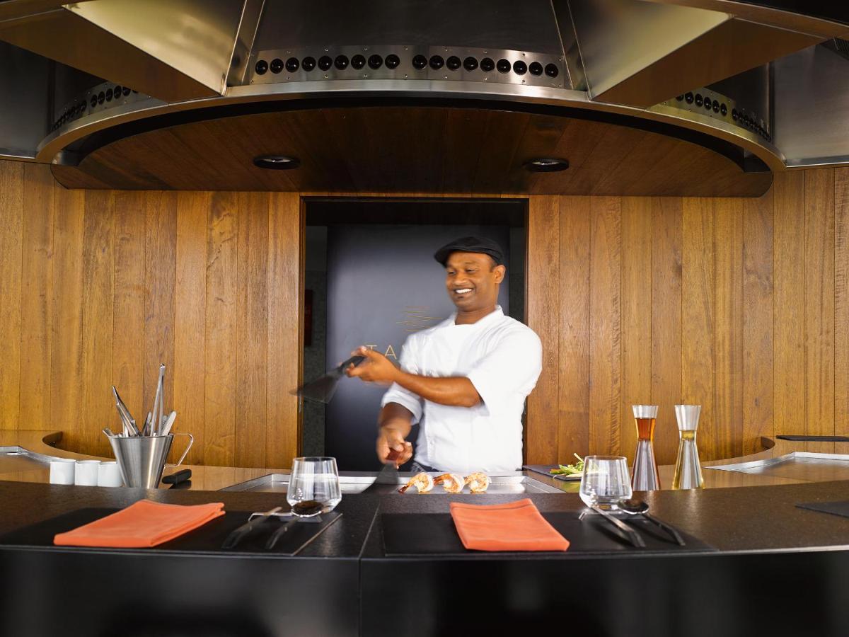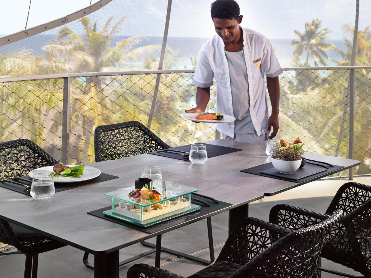L'offre gastronomique est dirigée par des chefs internationaux renommés dans trois restaurants de luxe, dont Aragu, pour la haute cuisine moderne, et Tavaru, une tour de style Teppanyaki qui abrite également l'une des caves à vin les plus prestigieuses et rares de l'océan Indien. L'expérience culinaire est une référence mondiale.