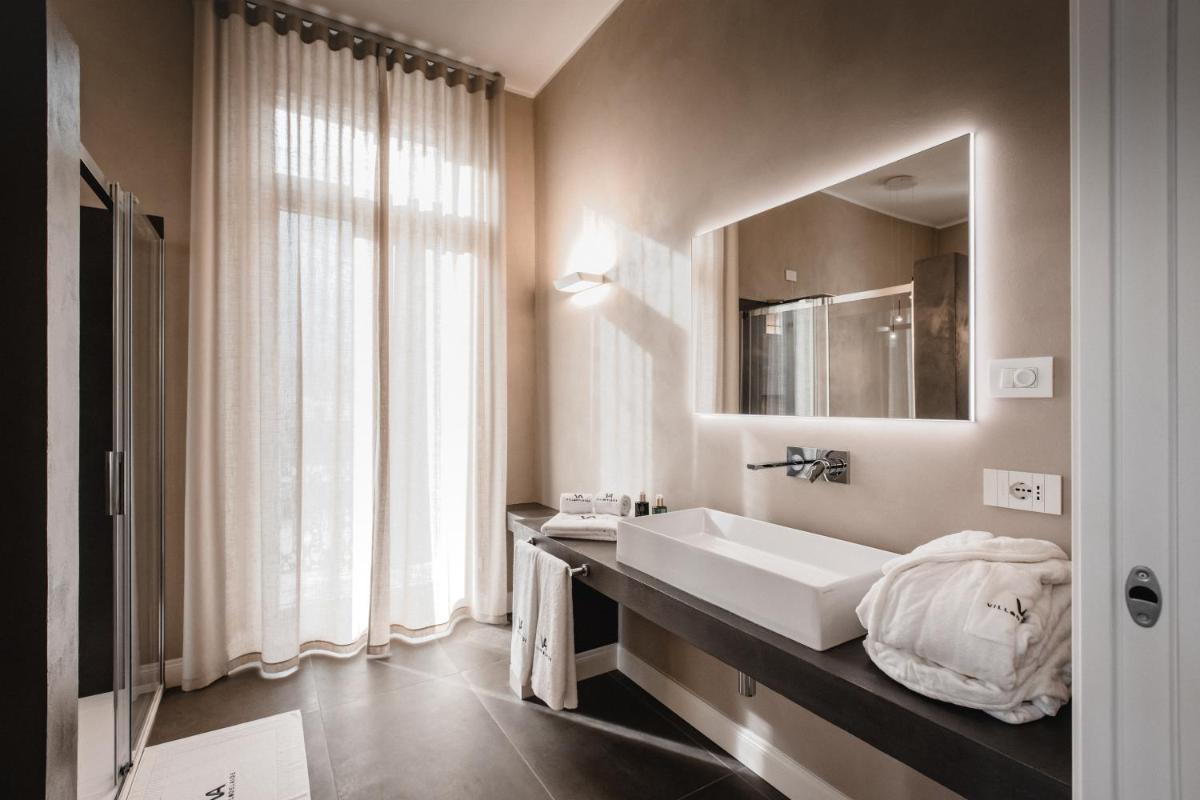 La Villa offre des espaces raffinés et soignés, où l'architecture historique se fond avec un design contemporain et fonctionnel. Les chambres et les suites sont caractérisées par des détails de valeur et offrent toutes une vue imprenable sur les vignobles, patrimoine de l'humanité, garantissant un réveil et un repos en totale harmonie avec la nature environnante.