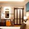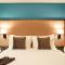 Les intérieurs se distinguent par une esthétique audacieuse, où des couleurs vives et des lignes épurées créent une atmosphère dynamique. Les chambres sont conçues comme des sanctuaires de détente dotés du meilleur de la technologie moderne. Un petit plus appréciable est l'éclairage d'ambiance ajustable, permettant de transformer l'atmosphère de votre chambre selon vos envies après une journée de visites.