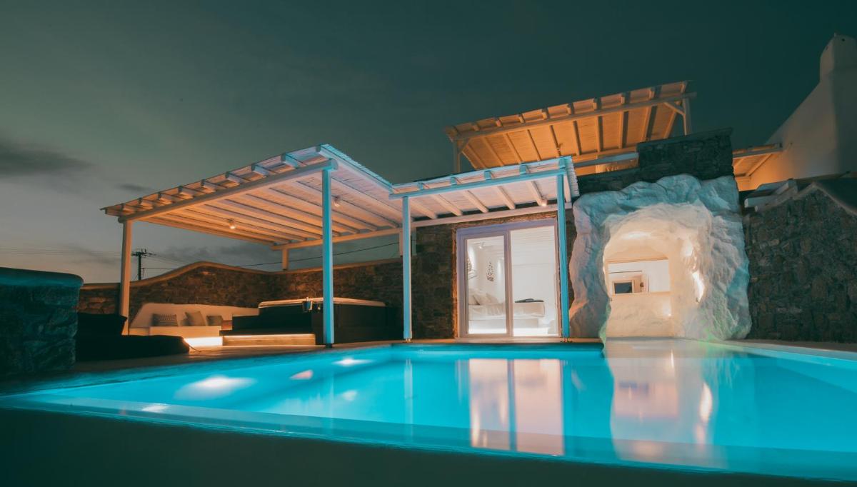 Adel Private Suites è un complesso di lusso a Mykonos, che offre un design contemporaneo e all'avanguardia, incentrato sulla privacy e sul comfort. Situato in posizione strategica, permette agli ospiti di godere della tranquillità pur essendo a breve distanza dai punti nevralgici dell'isola. È particolarmente noto per le sue suite con piscina privata a sfioro.