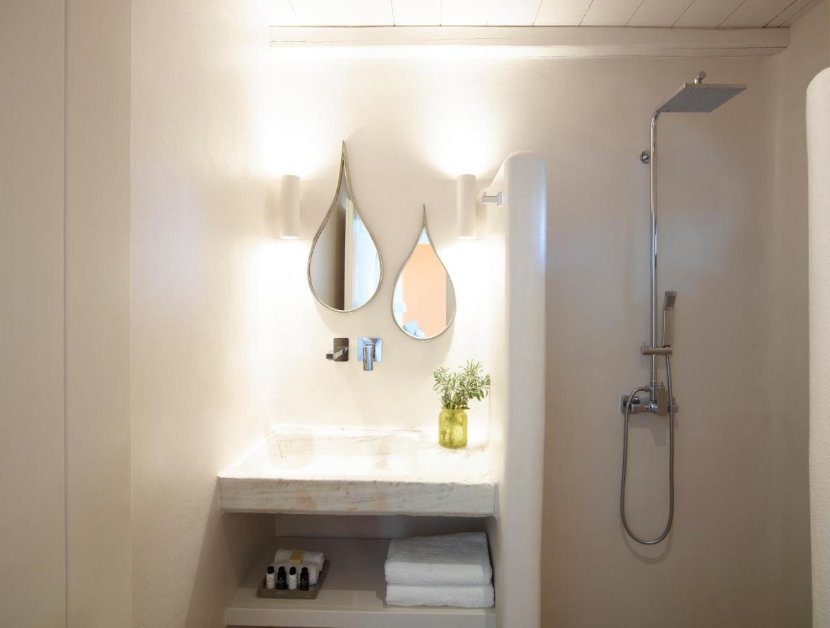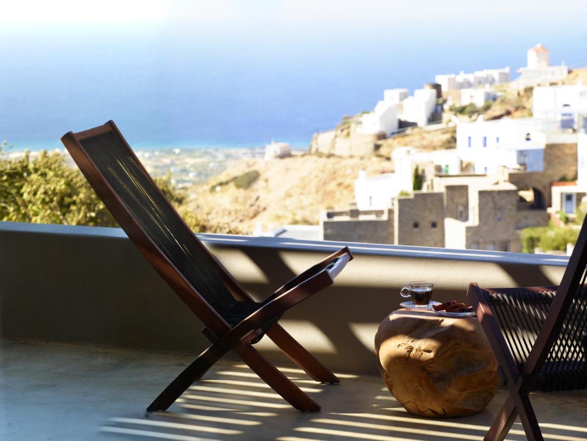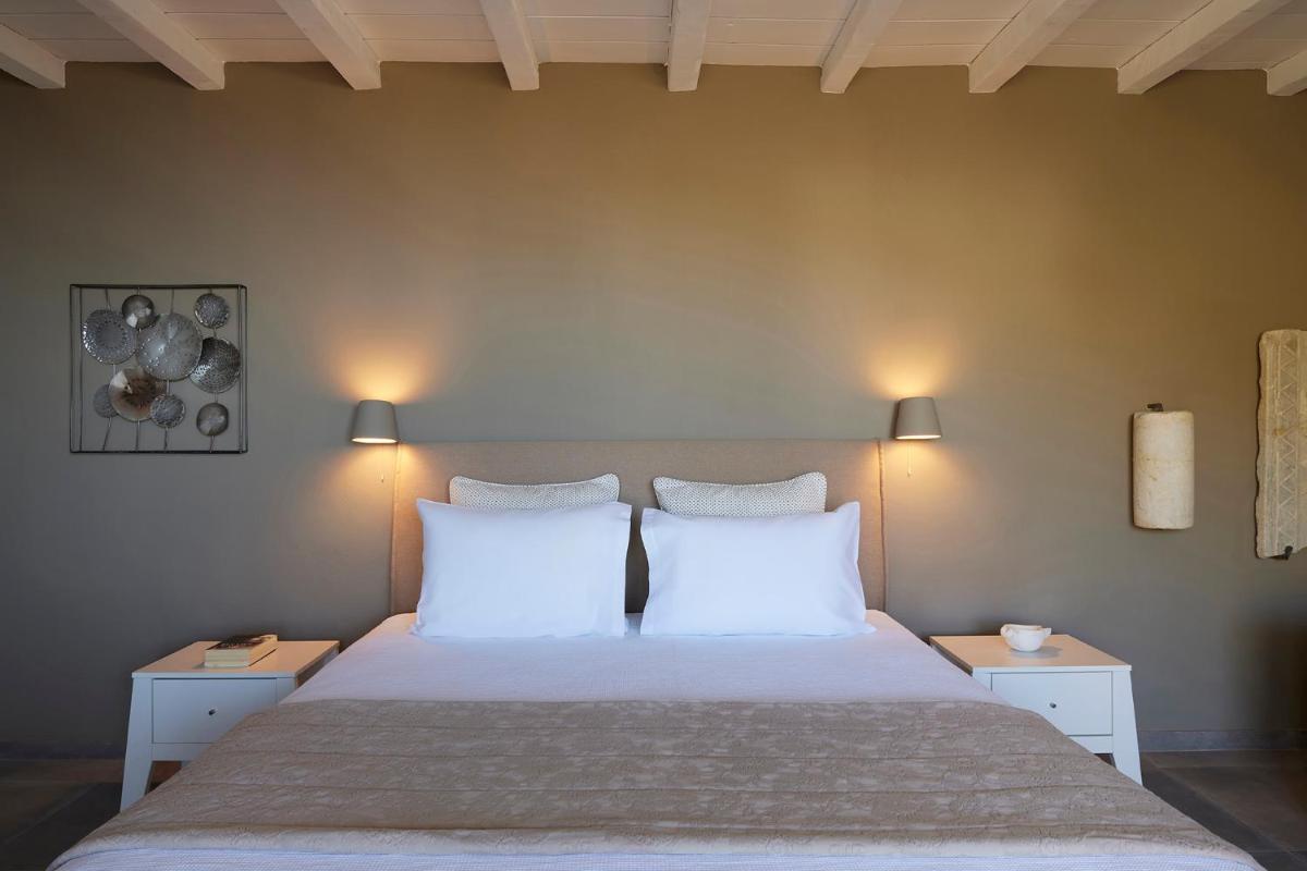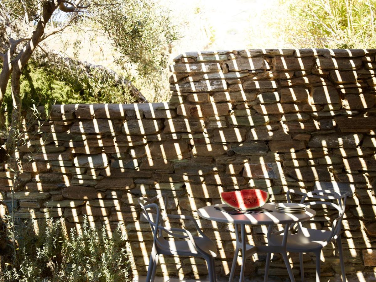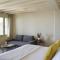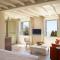 Le suite sono costruite e decorate seguendo l'architettura distintiva di Tinos, con l'uso di pietra, marmo locale e tocchi di colore, mantenendo uno stile elegante e minimalista. Il lusso è espresso attraverso la qualità dei materiali e la cura dei dettagli.