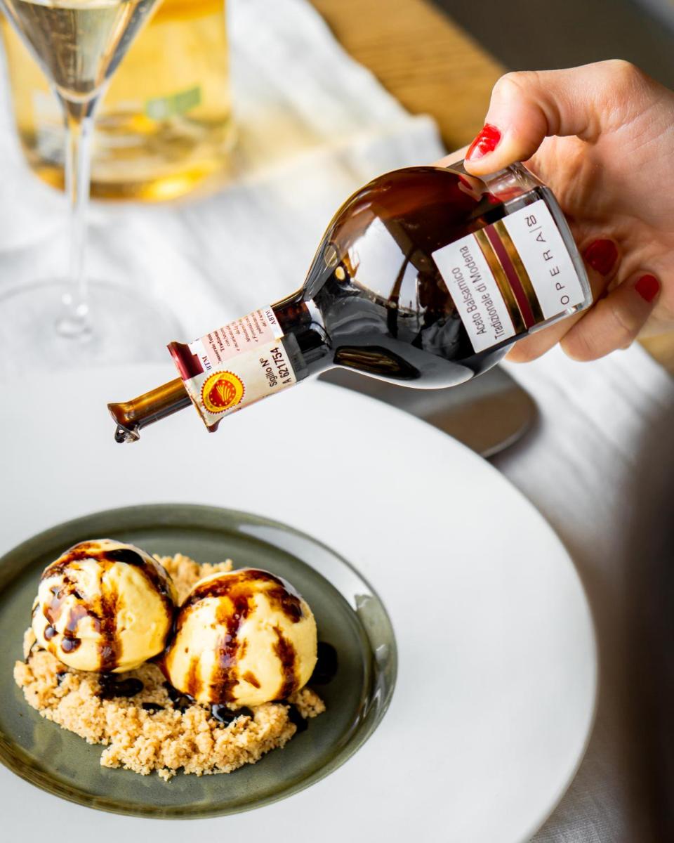 Il ristorante interno serve piatti della cucina tipica emiliana preparati con materie prime del territorio. La colazione è un ricco buffet con torte fatte in casa e prodotti locali. L'esperienza enogastronomica è completata dalle attività di degustazione: gli ospiti possono partecipare a tour guidati della cantina e dell'acetaia per scoprire il processo di produzione del Lambrusco e dell'Aceto Balsamico Tradizionale di Modena.