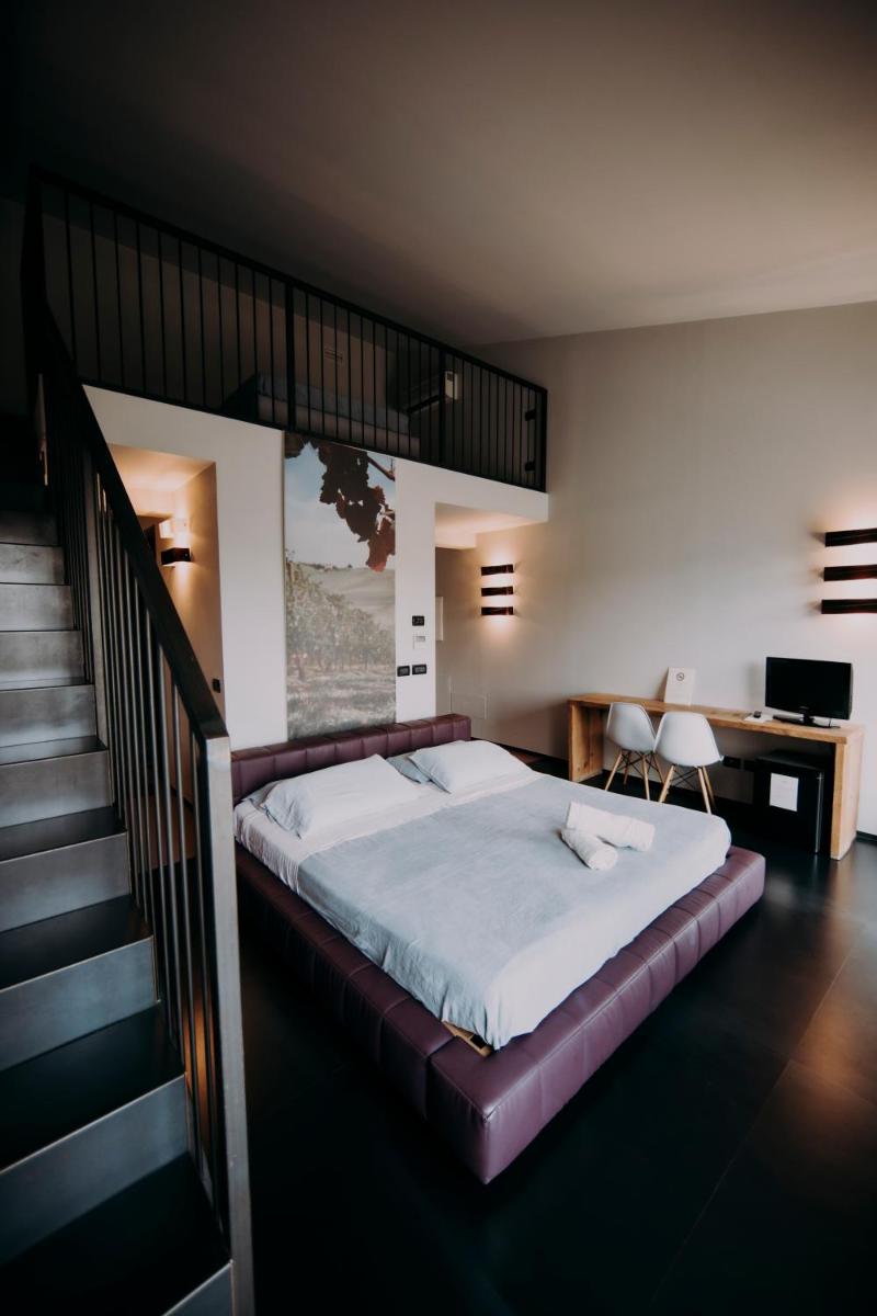 Il resort dispone di Junior Suite spaziose ed eleganti. Tutte le camere sono arredate con un design moderno, linee pulite e colori neutri rilassanti. Sono dotate di ogni comfort, tra cui TV satellitare LCD, cassaforte, aria condizionata, minibar, Wi-Fi gratuito e un balcone o una terrazza privata che offre una magnifica vista sui vigneti circostanti. Ogni suite è ispirata a un prodotto della tenuta, rendendo l'esperienza unica e personalizzata.