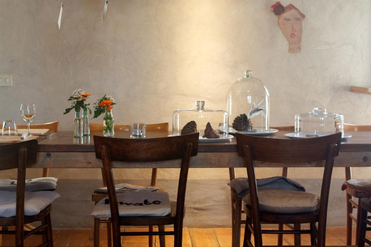 Il ristorante interno, "Al N°3 Cucina di Verdure", è rinomato per la sua offerta culinaria. Propone una cucina biologica, vegetariana e vegana, con menù che esaltano le verdure e i prodotti a km 0, molti dei quali coltivati direttamente nella fattoria. La colazione a buffet, inclusa nel soggiorno, è preparata con prodotti freschi e biologici. Il ristorante dispone di una piacevole terrazza coperta con vista, perfetta per cene romantiche e rilassanti.