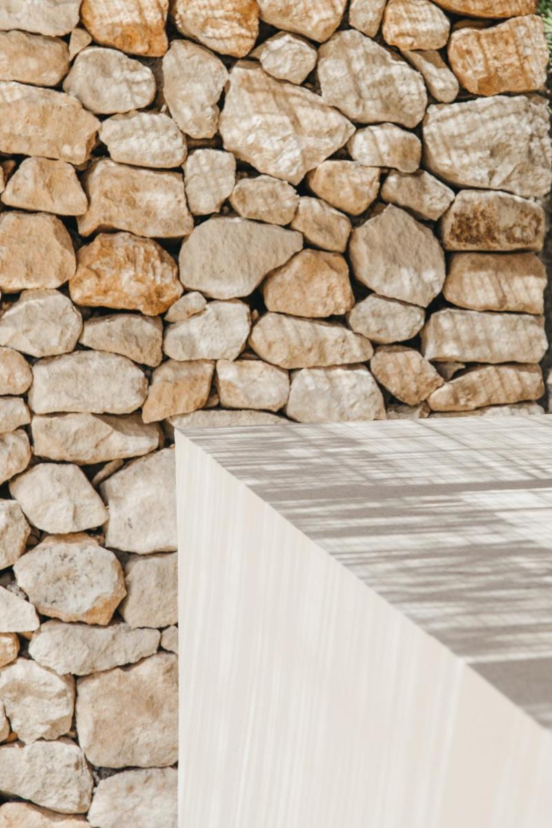 L'area esterna è un'oasi di serenità. La piscina, incastonata tra i giardini rigogliosi, gli ulivi secolari e i muretti a secco, offre un luogo di assoluto relax. Il paesaggio rurale circostante regala una sensazione di isolamento e connessione con la terra. È il luogo perfetto per leggere un libro e godersi il silenzio della campagna minorchina.