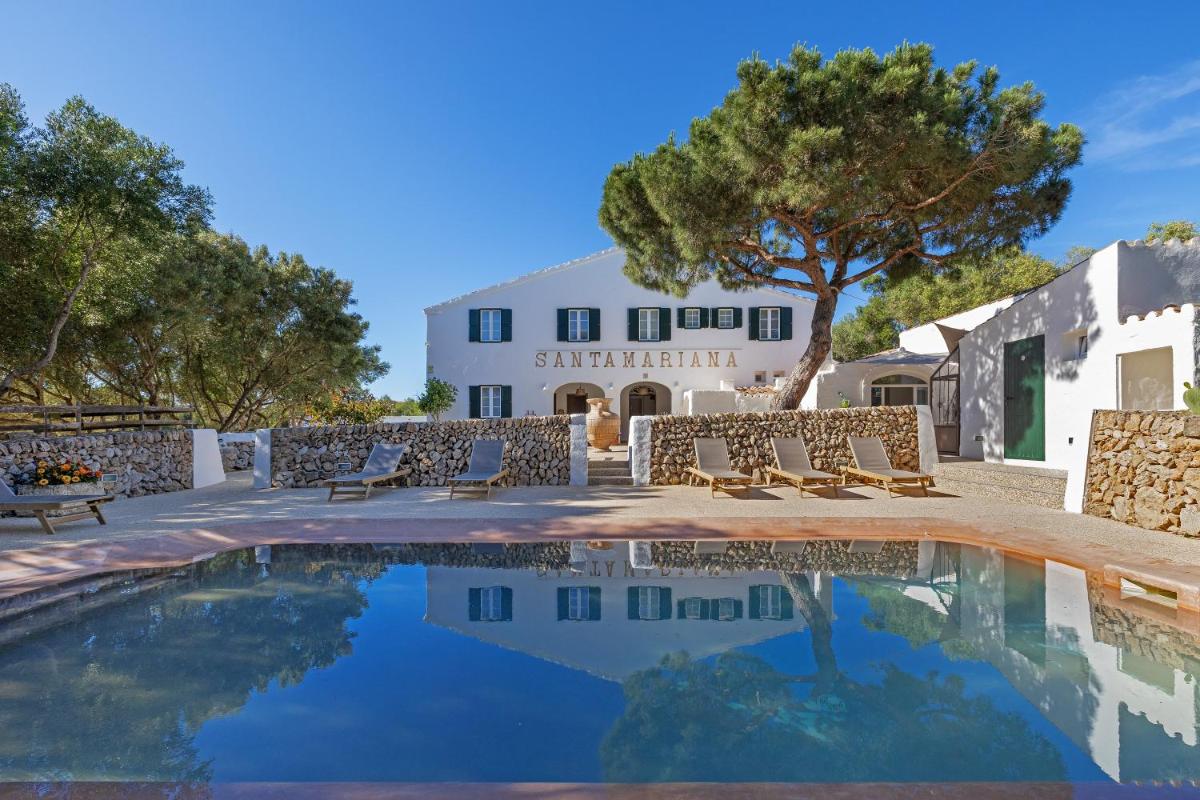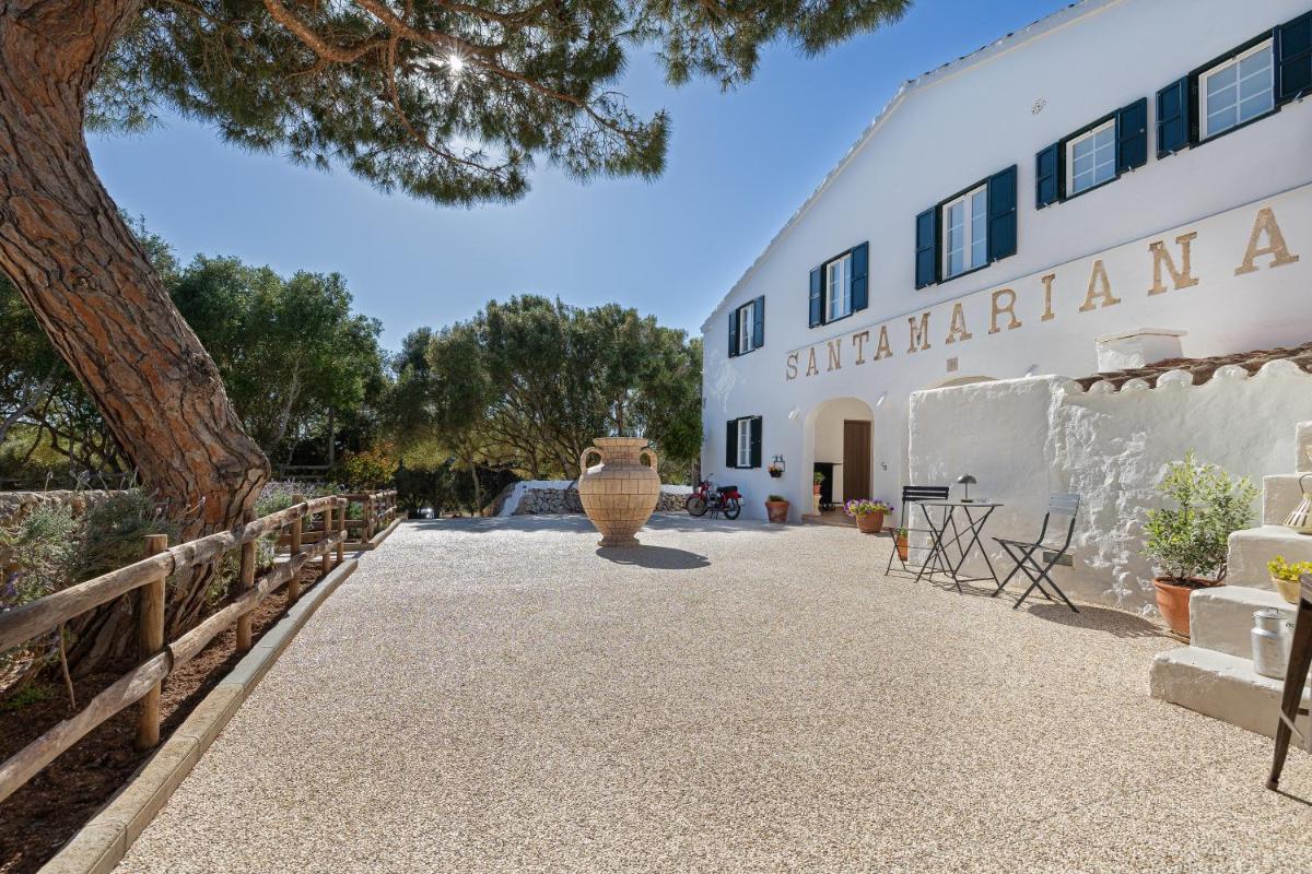 L'architettura di Santa Mariana è tipica delle case rurali minorchine. La struttura è stata restaurata mantenendo la sua semplicità e il suo fascino rustico. Gli interni sono luminosi, con travi in legno e arredi che combinano pezzi d'epoca con comfort moderni, creando un'atmosfera rilassante, senza pretese ma elegante. L'obiettivo è far sentire gli ospiti come a casa propria, in un ambiente storico e protetto.