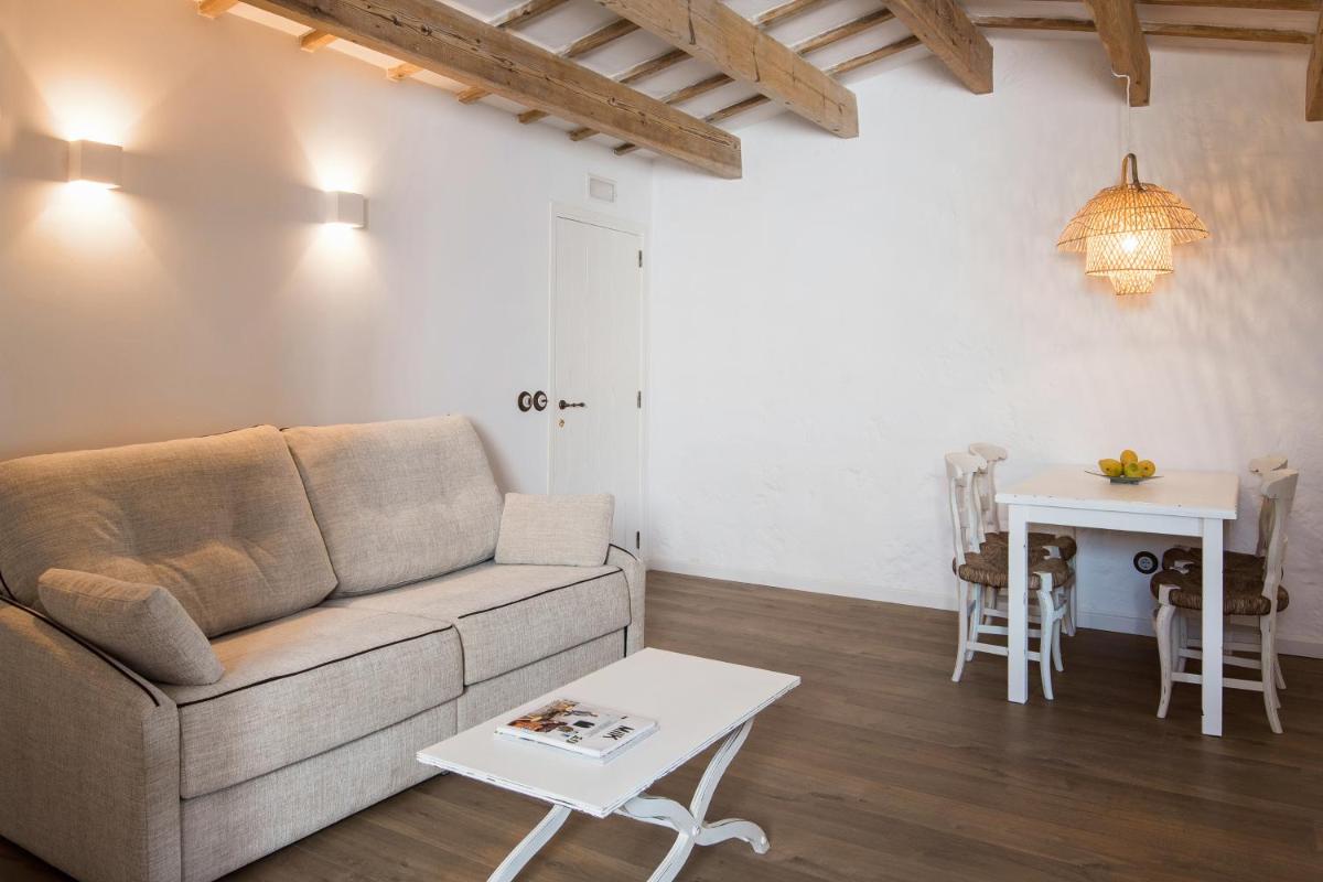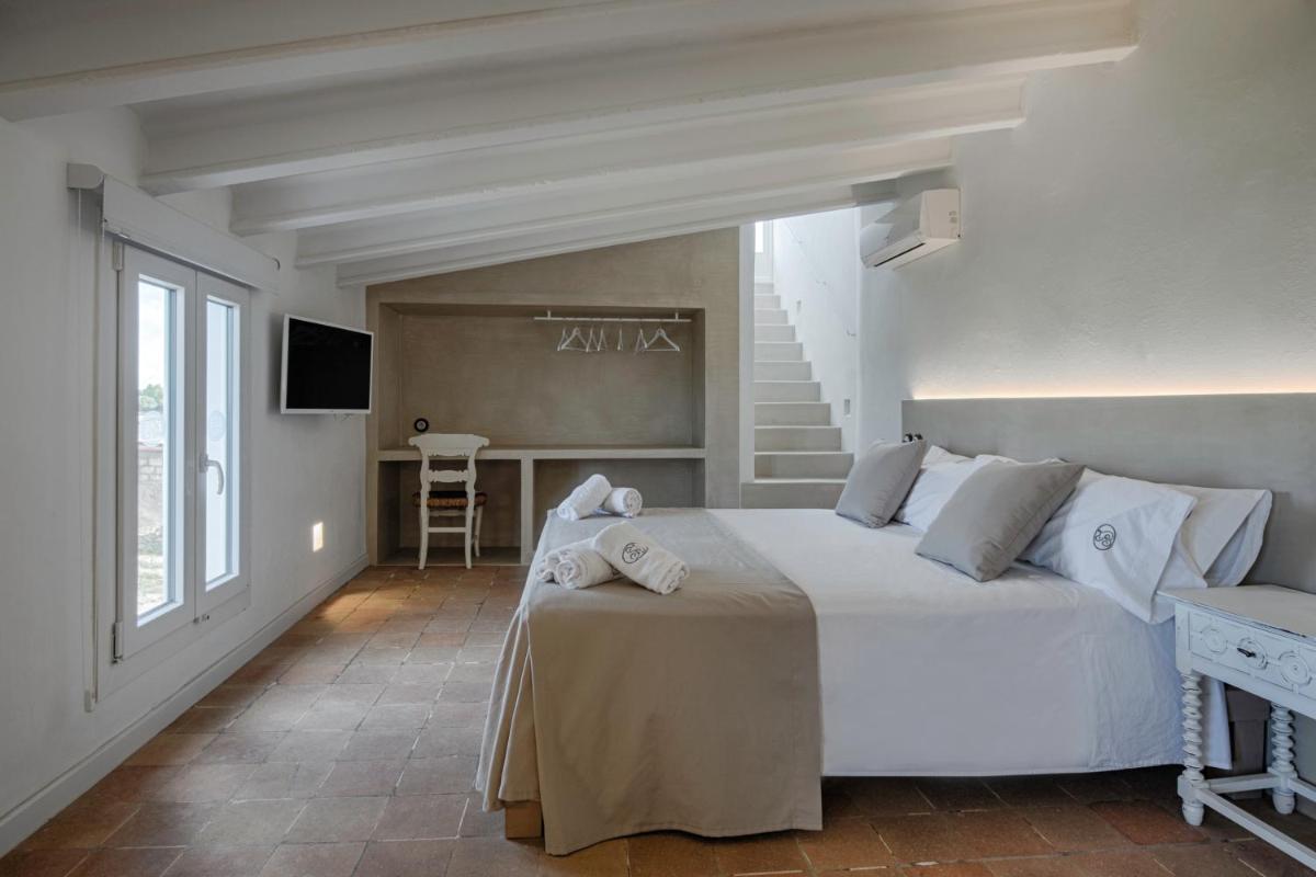 Le camere, ricavate dalle antiche stalle e fienili, presentano un design che fonde elementi rustici originali (come travi in legno a vista e pavimenti in cotto) con comfort moderni. Ogni alloggio è un'oasi di tranquillità, arredato con pezzi unici che ne esaltano il carattere storico e offrono viste pittoresche sulla campagna circostante.