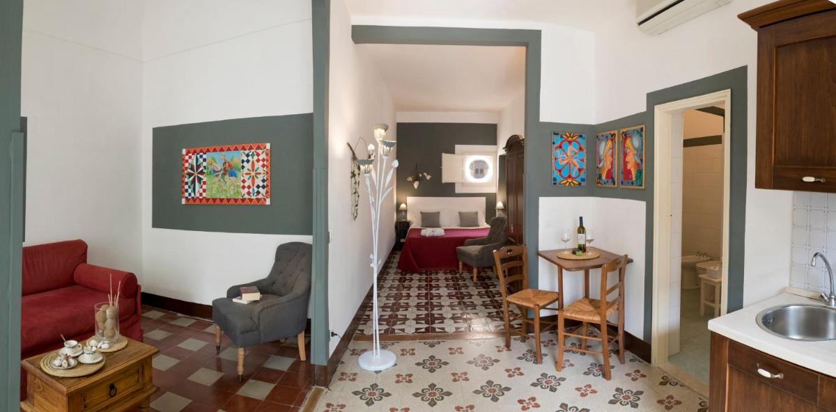 Le camere di Ai Lumi sono il risultato di un sapiente restauro che ha preservato pavimenti in cotto antico, travi in legno a vista e spessi muri in pietra. Una piccola chicca è il cortile interno, un'oasi di pace lontana dal fermento cittadino, dove è possibile respirare la storia secolare del palazzo ammirando i dettagli in ferro battuto e le piante tipiche del Mediterraneo.