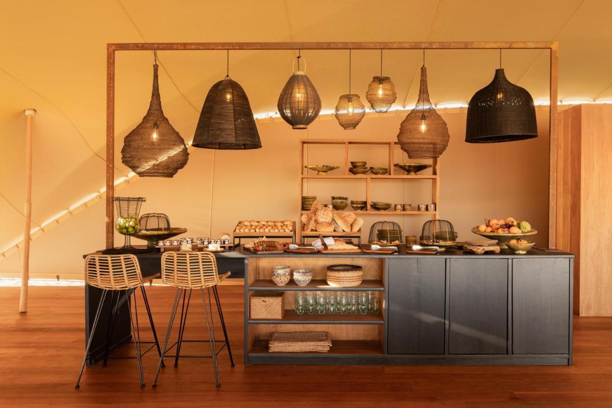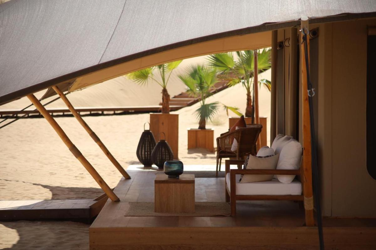 Le sistemazioni sono costituite da lussuose villette private, ognuna progettata per massimizzare la privacy e la vista sulle dune. Caratteristica distintiva sono le piscine a sfioro private, che creano un contrasto spettacolare con l'ambiente arido circostante. Gli interni riflettono l'eleganza minimalista, utilizzando materiali locali e tessuti naturali, garantendo un soggiorno ineguagliabile.