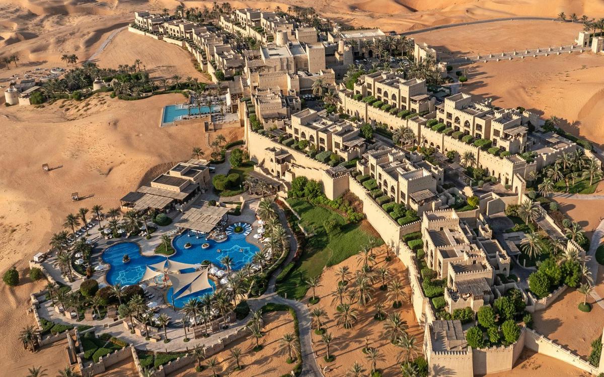 L'architettura del resort è un omaggio alla tradizione dei forti e dei castelli arabi, con interni riccamente decorati, colori caldi e dettagli artigianali. Le camere, le suite e le ville private con piscina offrono una vista incredibile sulle infinite dune dorate, garantendo privacy e un senso di grandezza regale.