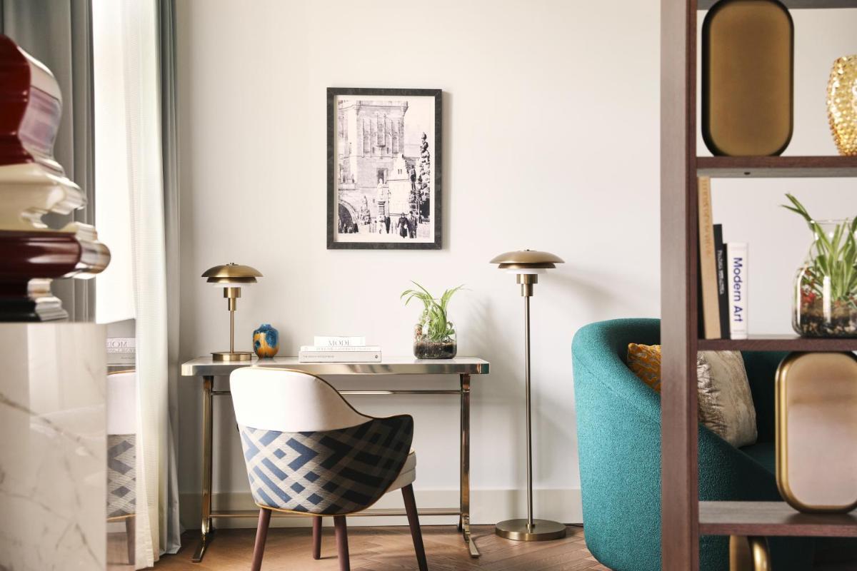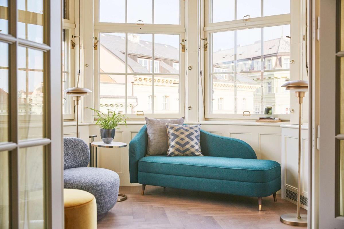 Il design interno è eclettico e altamente concettuale, ispirato alle leggende e ai miti boemi di Praga, come il Golem e la Principessa Libuše. Ogni spazio, dalle camere elegantemente arredate ai corridoi, è una celebrazione dell'artigianato locale e dell'arte contemporanea, creando un'atmosfera unica e stimolante.