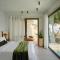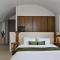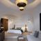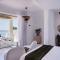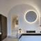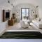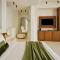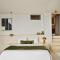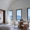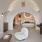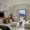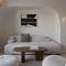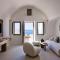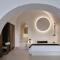 Le suite sono lussuose 'case grotta' (cave houses) scavate nella roccia, con un design minimalista-chic, soffitti a volta e arredi fatti a mano. L'uso del bianco e dei materiali naturali crea un senso di pace e lusso sobrio.