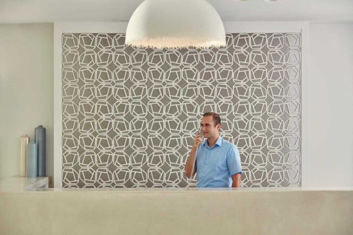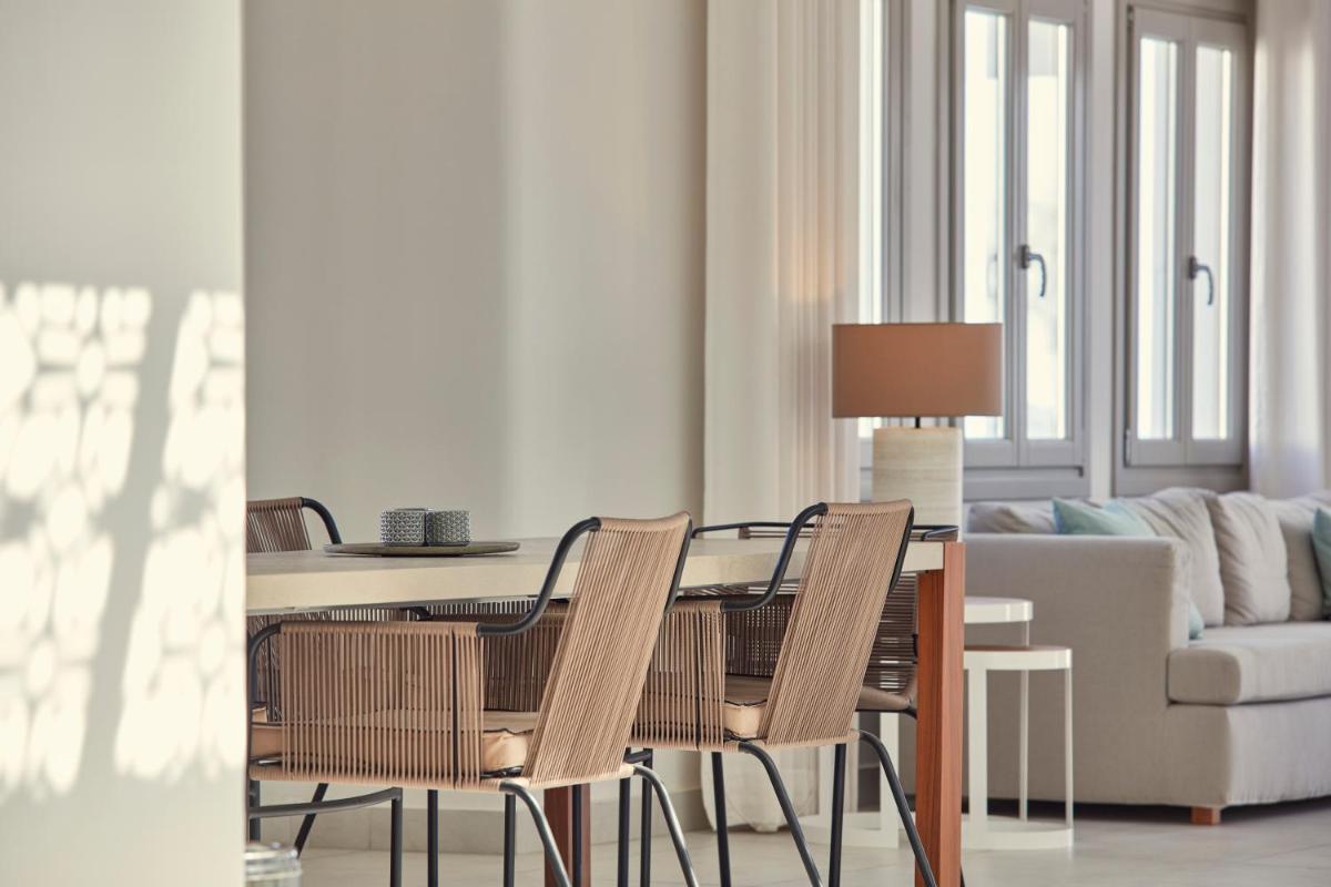 Le camere e le suite sono ben attrezzate e confortevoli, molte offrono vista mare diretta. L'hotel include anche un ristorante di qualità che serve piatti freschi mediterranei e internazionali.