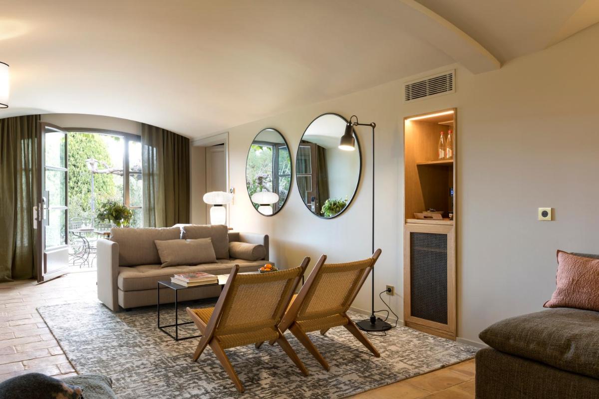 Le camere e le suite sono distribuite in cinque diversi edifici, ognuno con il proprio carattere unico ma tutti accomunati dall'eleganza rustica provenzale. Arredi antichi, tessuti pregiati e l'uso di materiali naturali creano un'atmosfera di comfort raffinato e autentico, in perfetta armonia con l'ambiente circostante.