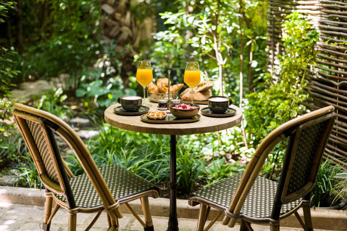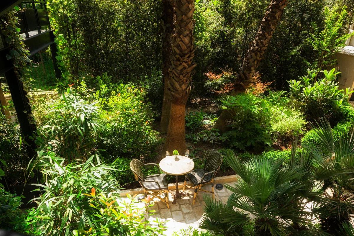 Un grande vantaggio del B Montmartre è il suo cortile interno fiorito e appartato, una vera e propria gemma nascosta che offre una quiete inaspettata nel vivace quartiere. È il luogo perfetto per gustare la colazione o un drink serale, offrendo una pausa di assoluta tranquillità nel cuore di Parigi.