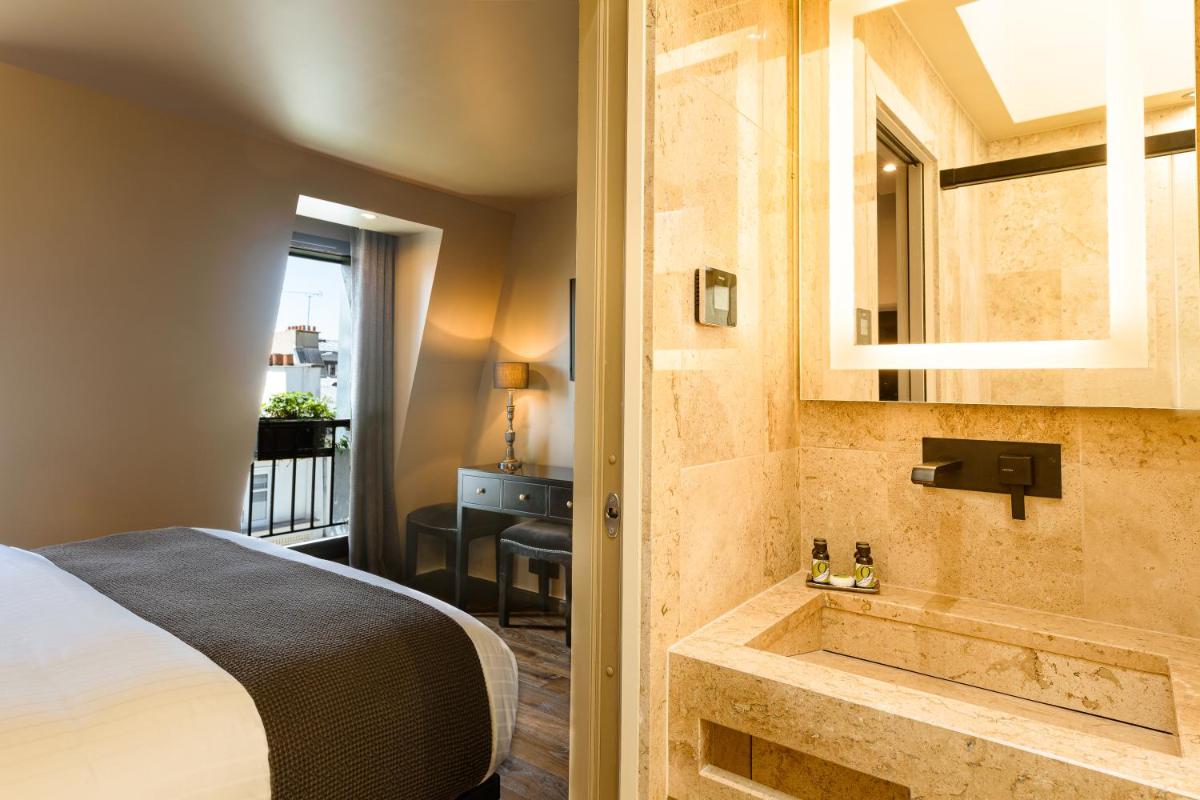 Gli interni sono caratterizzati da un design contemporaneo, con colori vivaci e tocchi di arte moderna che riflettono l'energia creativa di Montmartre. Le camere sono ottimizzate per il comfort e la funzionalità, dotate di letti di alta qualità e bagni eleganti, garantendo un rifugio stilisticamente curato e riposante dopo l'esplorazione della città.
