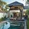 Le sistemazioni sono composte da spaziosi cottage e ville private, progettati per riflettere l'architettura dei villaggi balinesi tradizionali, con tetti di paglia e un'atmosfera calda e accogliente. Molte delle ville dispongono di giardini privati e piscine plunge, garantendo agli ospiti un rifugio sereno a pochi passi dalla sabbia dorata.