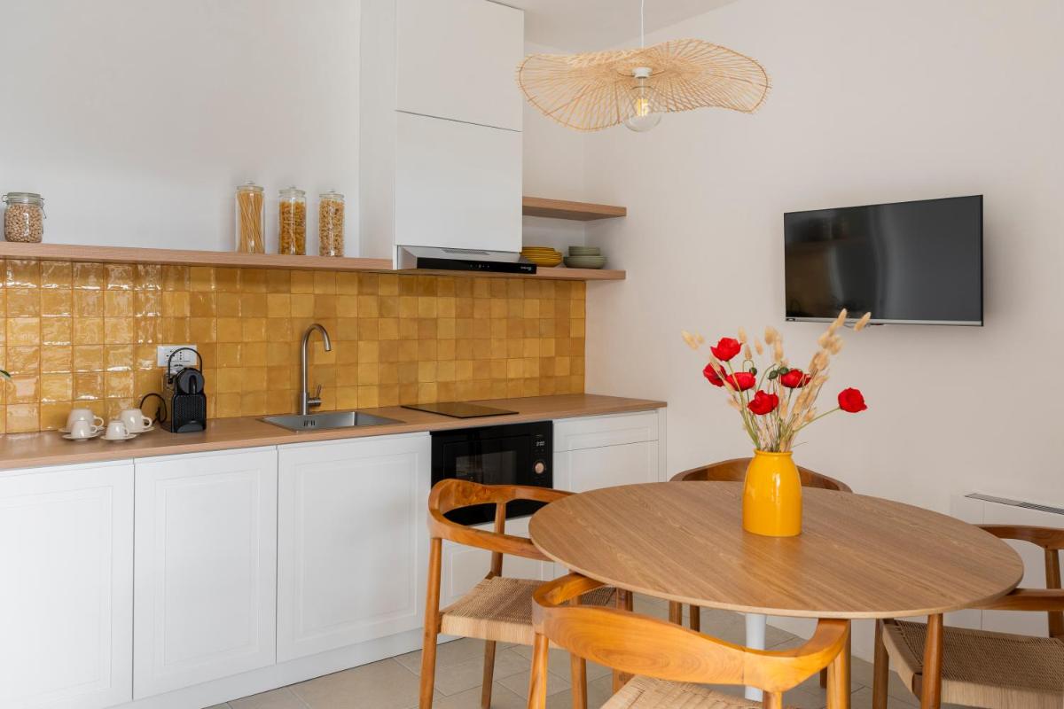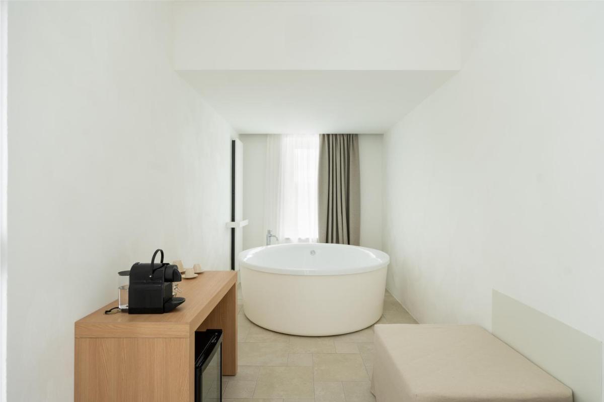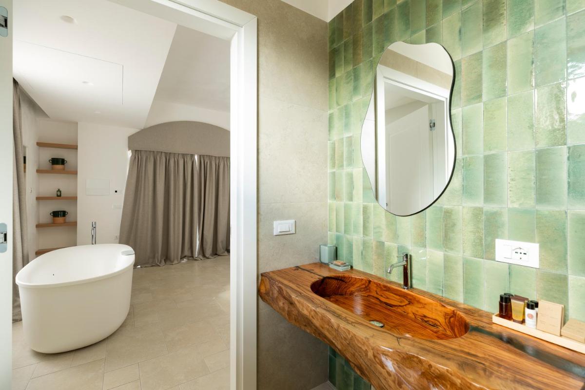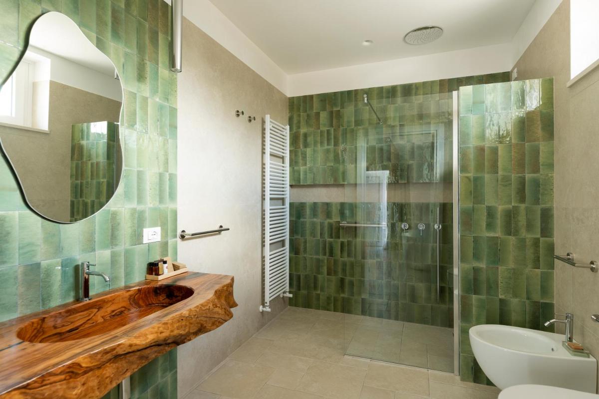 Le suite di Borgo Tufaia sono ricavate da antiche strutture rurali, sapientemente restaurate rispettando le forme originarie e utilizzando materiali naturali. Ogni ambiente è unico, caratterizzato da volte a stella e dettagli in pietra locale che mantengono naturalmente il fresco. Una piccola chicca è la cura dei tessuti in lino grezzo e degli arredi artigianali che rendono l'atmosfera calda e raffinata.