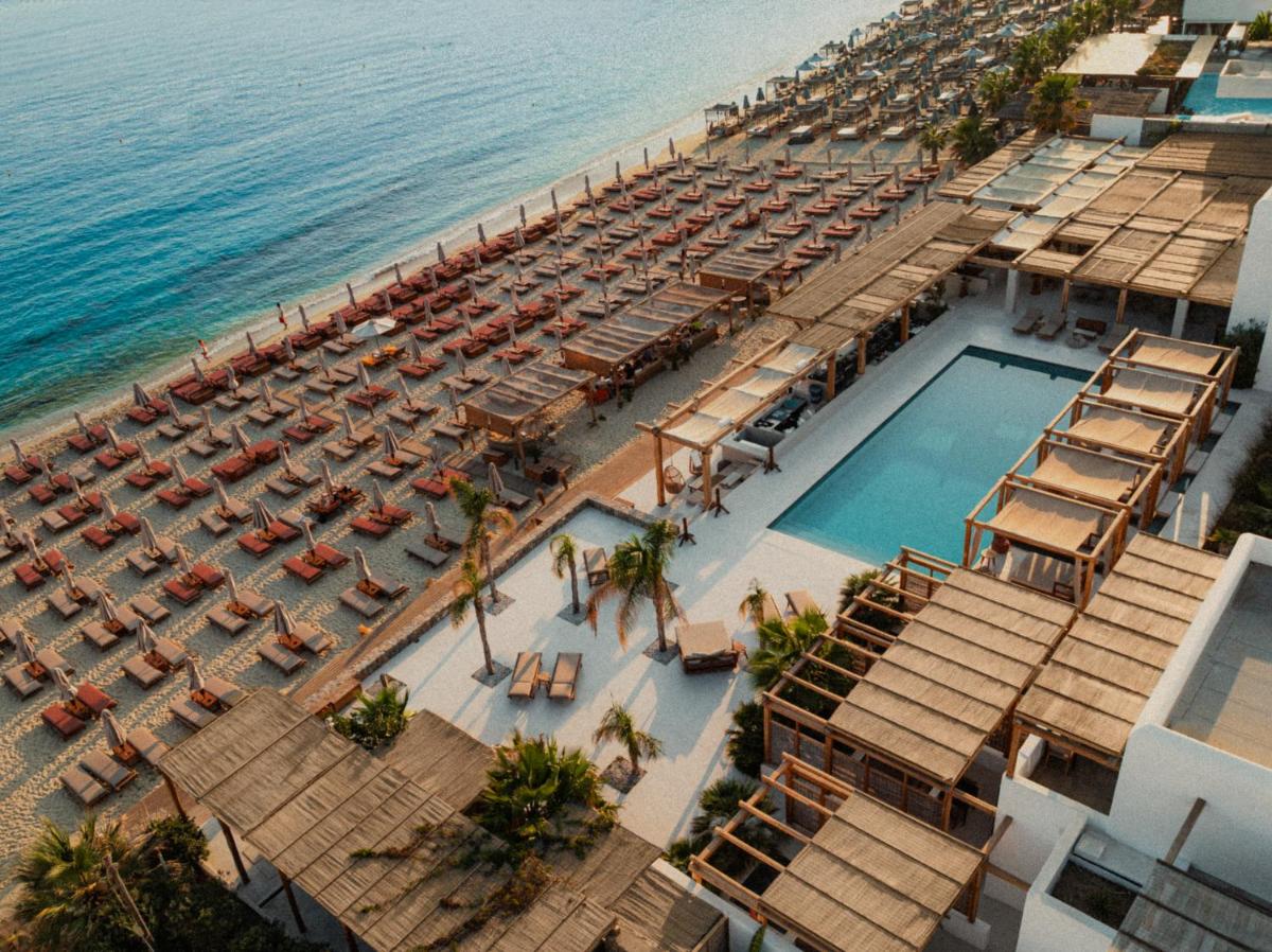 Il Branco Mykonos è un hotel boutique a 5 stelle situato direttamente sulla famosa spiaggia di Platis Gialos, una delle location più ambite e vivaci di Mykonos. Questo hotel combina un design minimalista ed elegante con un'atmosfera da beach club di lusso, offrendo un'esperienza di soggiorno che bilancia il relax in spiaggia con il divertimento sofisticato e alla moda.