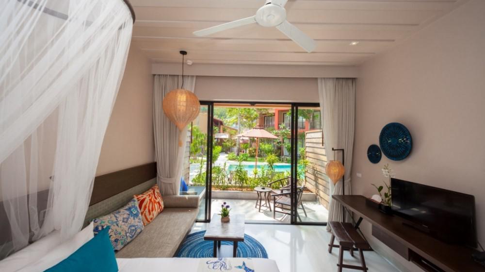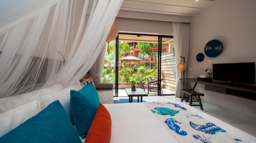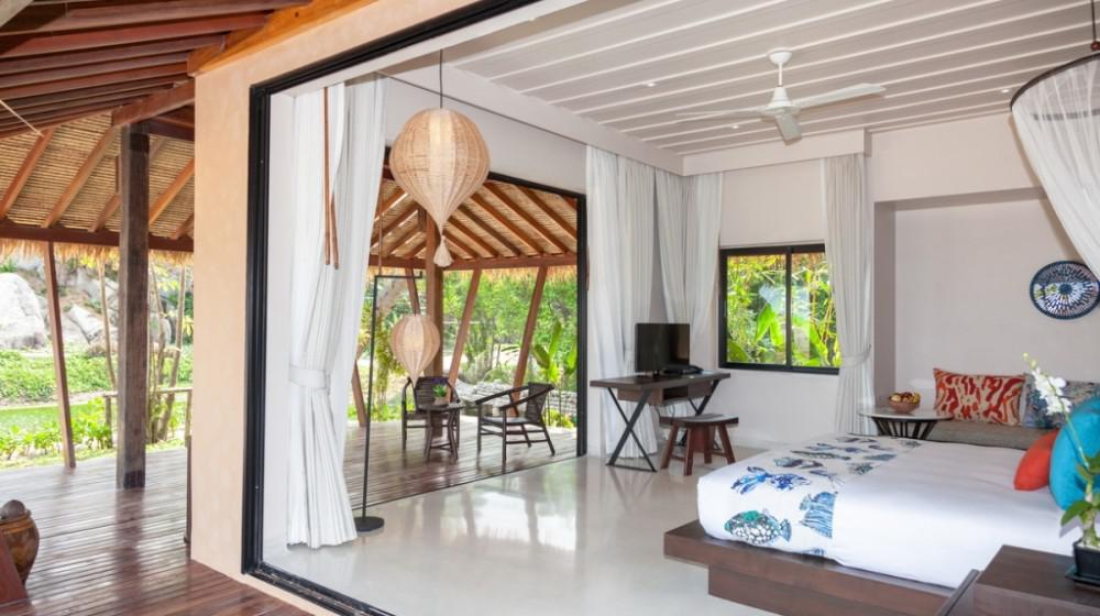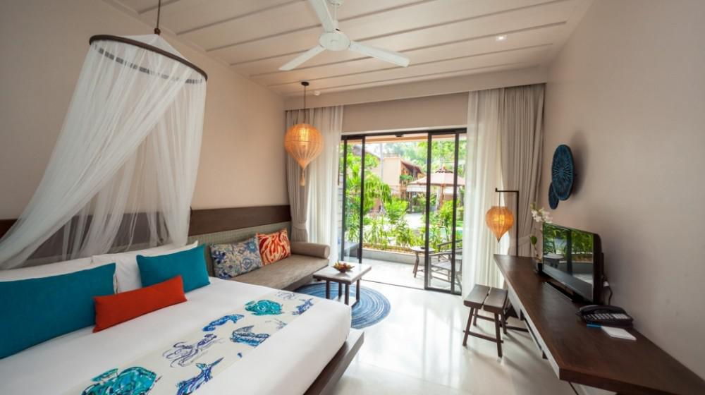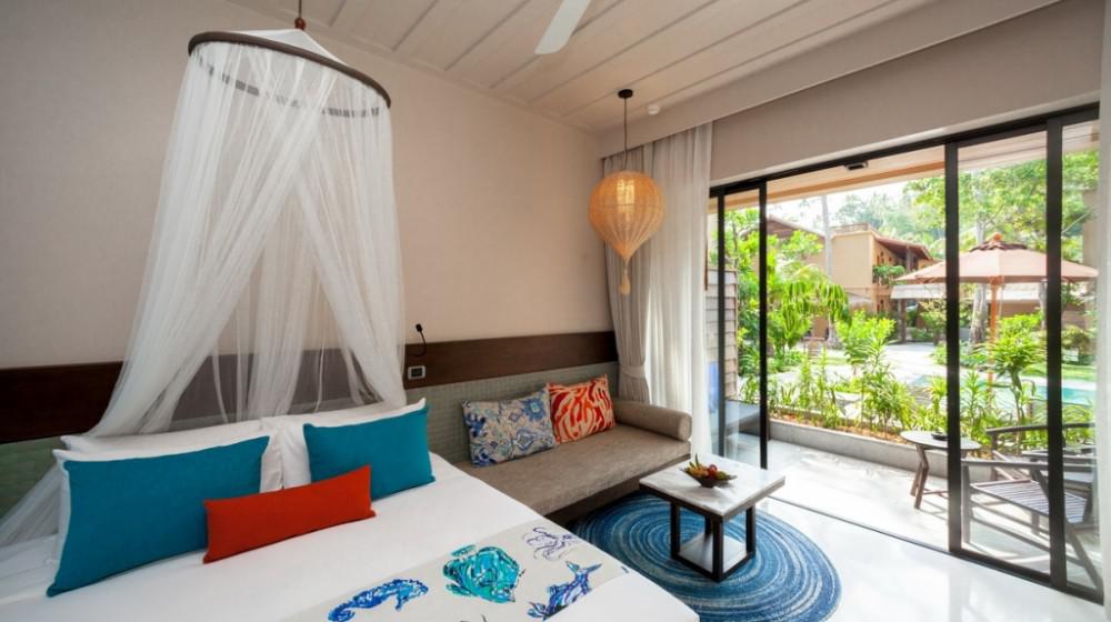 Il design si ispira allo stile 'village' con tetti in paglia e arredi in legno locale. La maggior parte delle camere, incluse le popolari Beachfront e Pool Access, offrono una connessione diretta e immediata con la sabbia bianca della spiaggia, incarnando il concetto di vacanza a piedi nudi. La cura dei dettagli crea un'atmosfera calda e familiare.