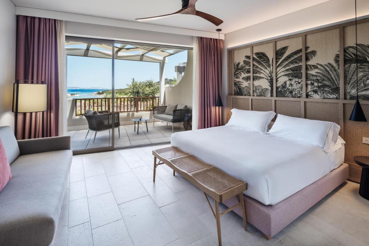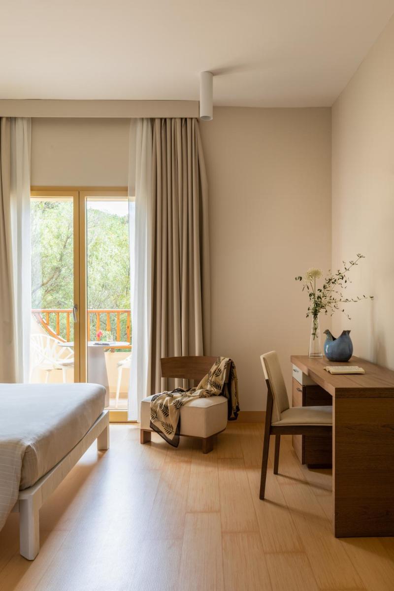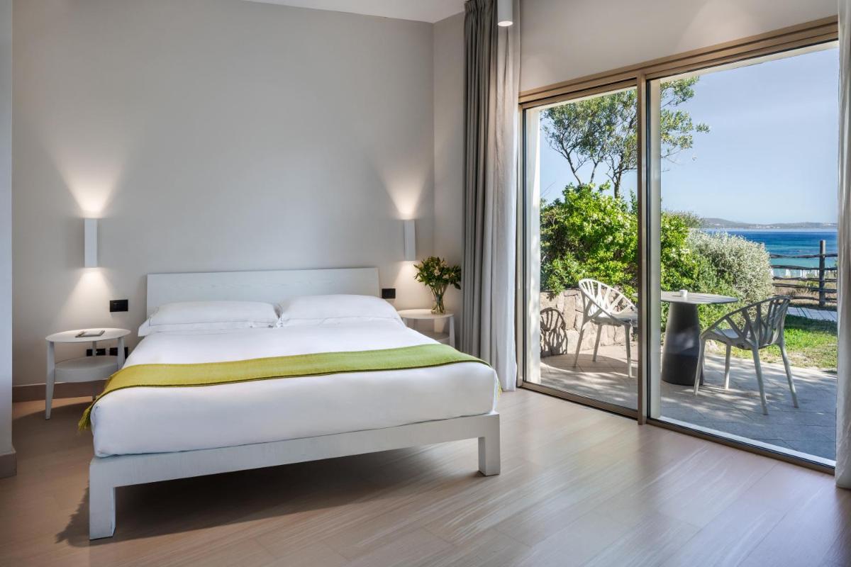 Le 85 sistemazioni (tra Camere e Suite) offrono ambienti luminosi e un design contemporaneo elegante che dialoga con i toni neutri e i materiali naturali della Sardegna. Le tipologie spaziano dalle Classic Vista Giardino alle lussuose Junior Suite con Terrazza Vista Mare. Molte camere dispongono di balcone o patio attrezzato, perfetto per ammirare il panorama. Tutti i bagni sono rivestiti in pregiato marmo di Orosei e le camere includono aria condizionata, minibar, Wi-Fi e set di cortesia ecologico, garantendo il massimo del comfort.