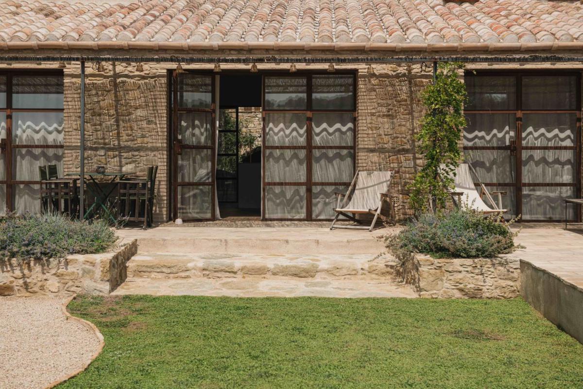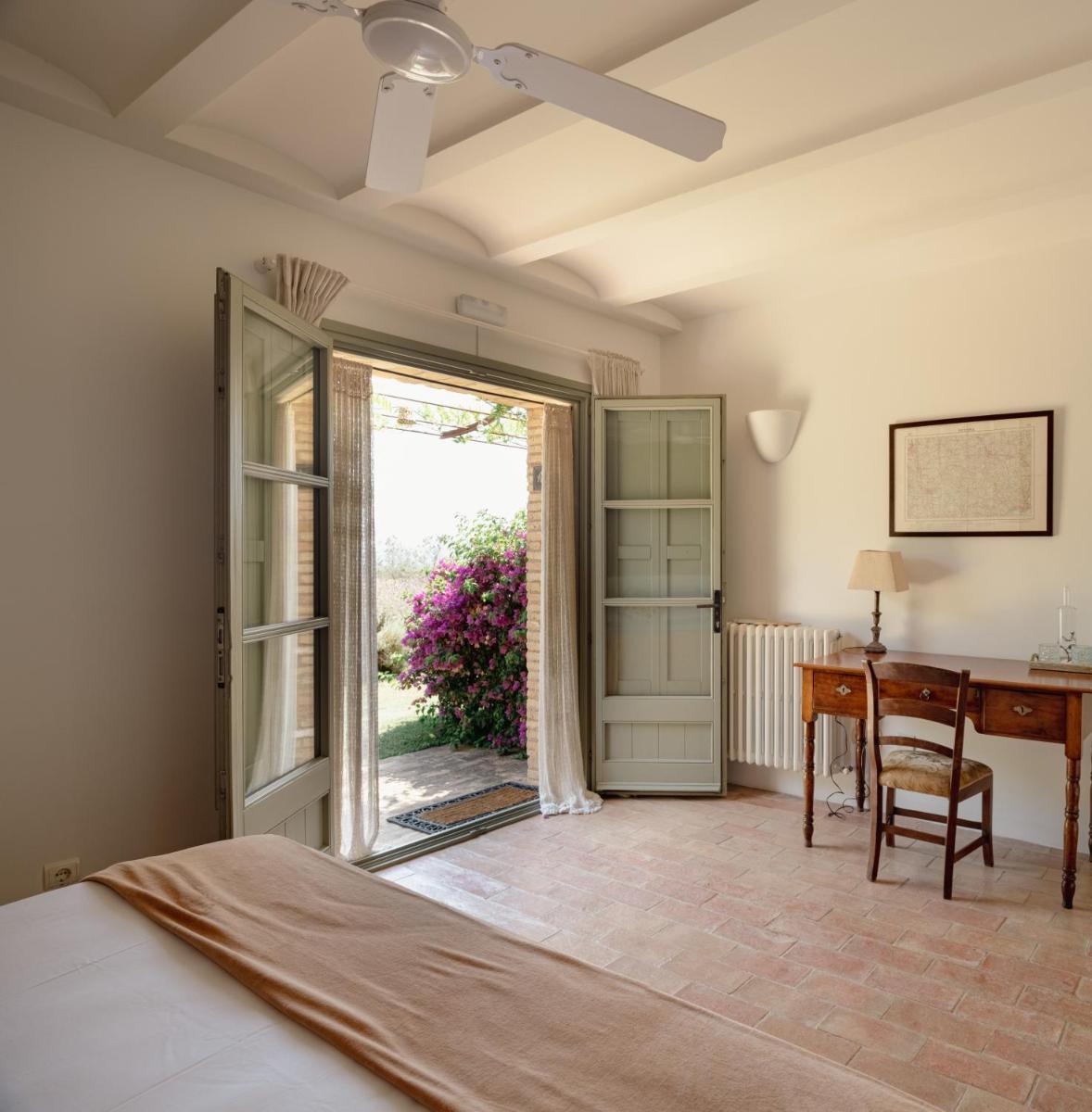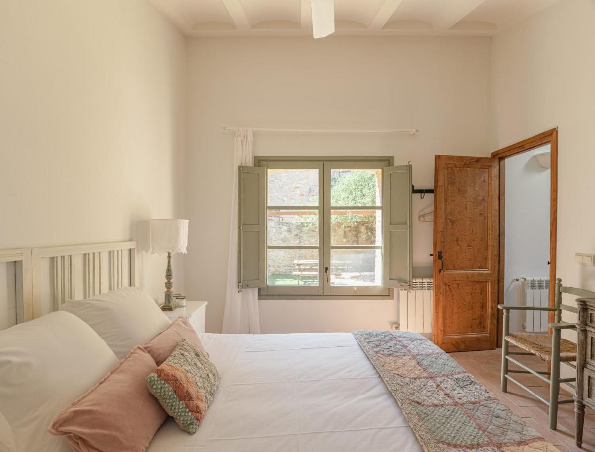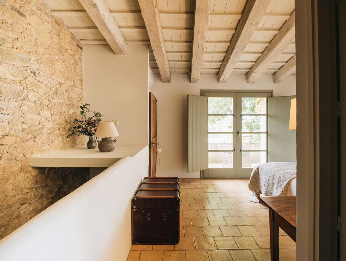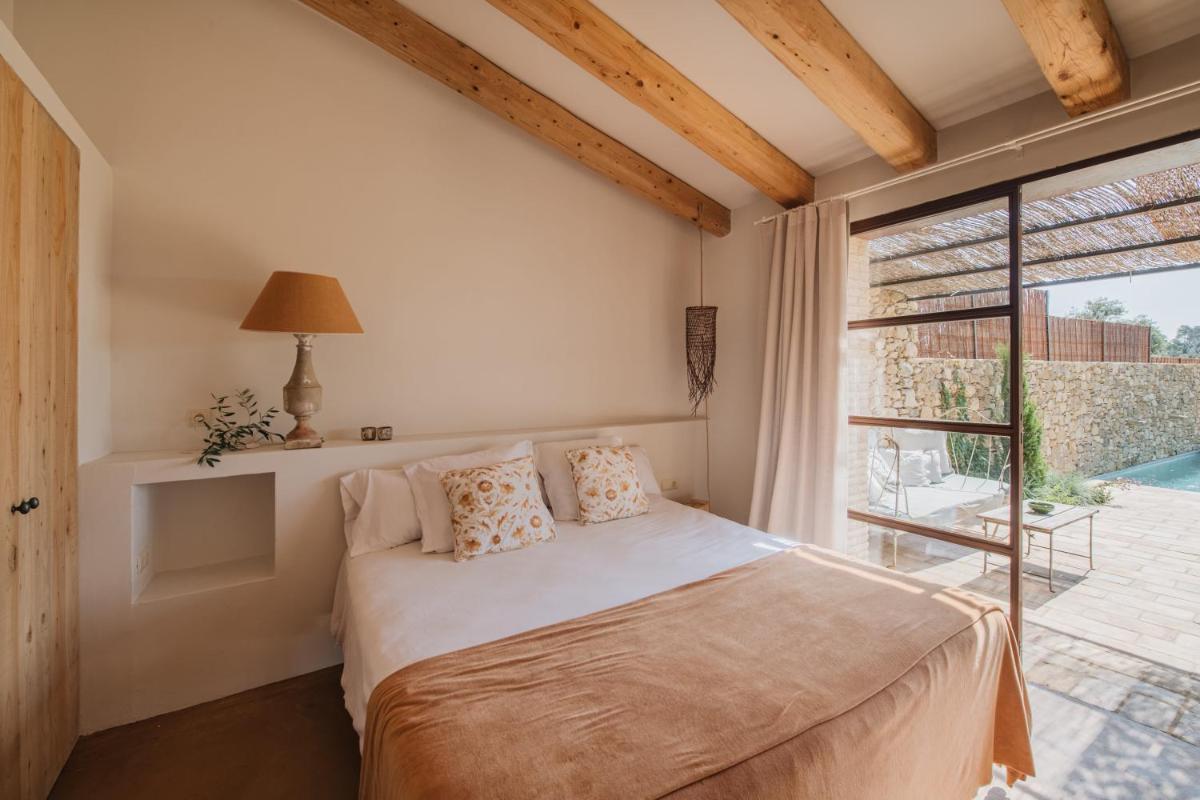 La Masia è stata restaurata con cura, mantenendo gli elementi originali (muri in pietra, travi in legno, pavimenti in cotto) e integrandoli con un design contemporaneo, minimalista e sostenibile. Le camere sono spaziose e decorate con un gusto rustico-chic, con grandi letti e bagni moderni, garantendo un rifugio di pace assoluta.