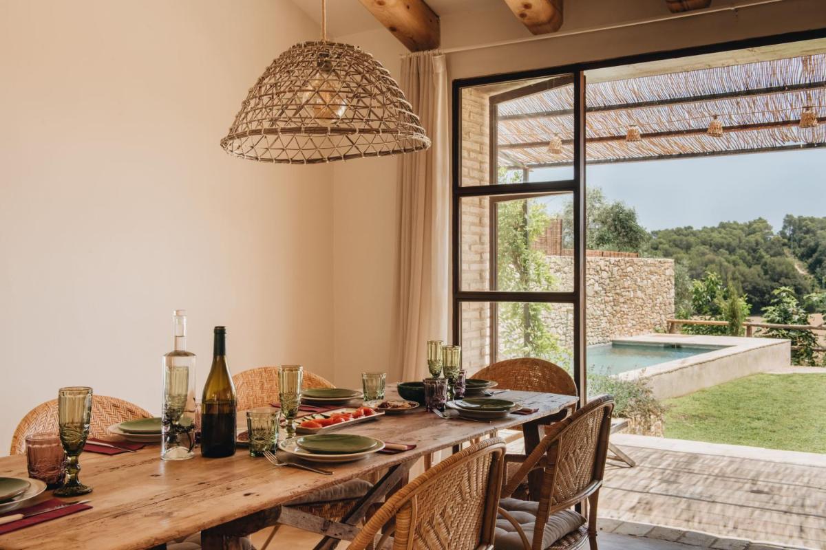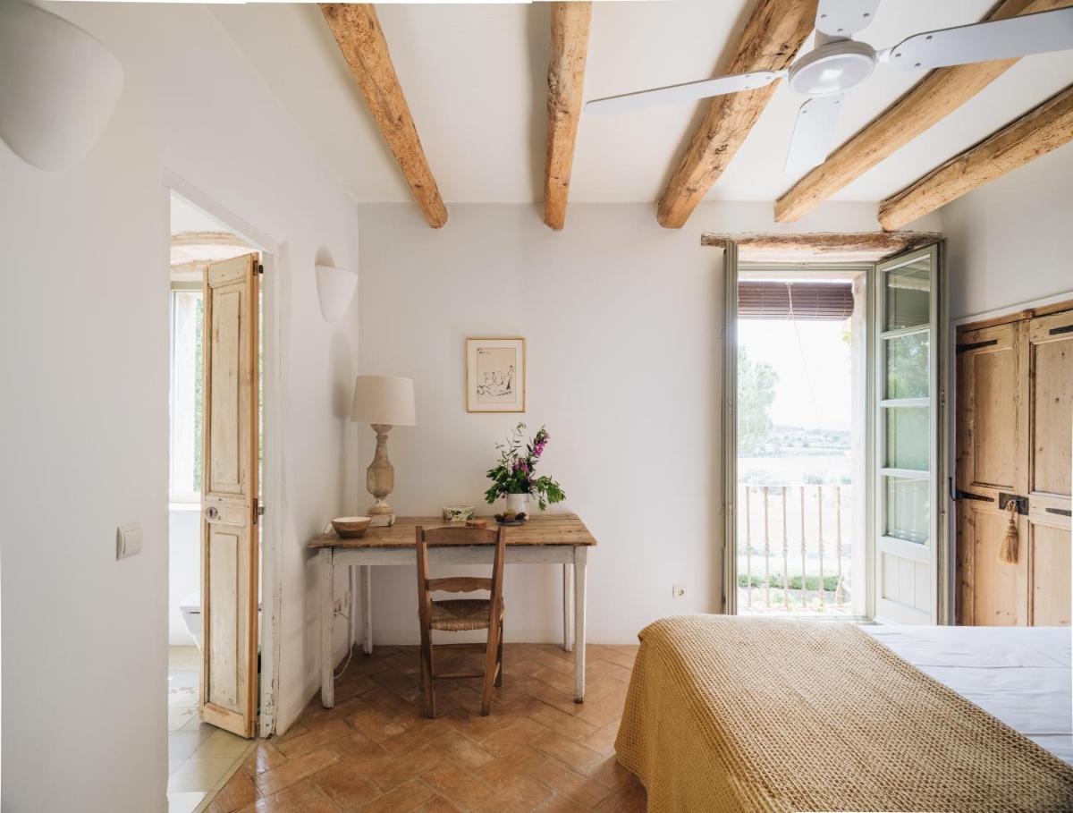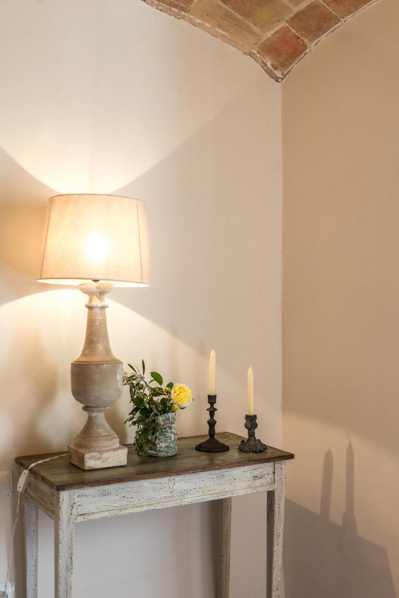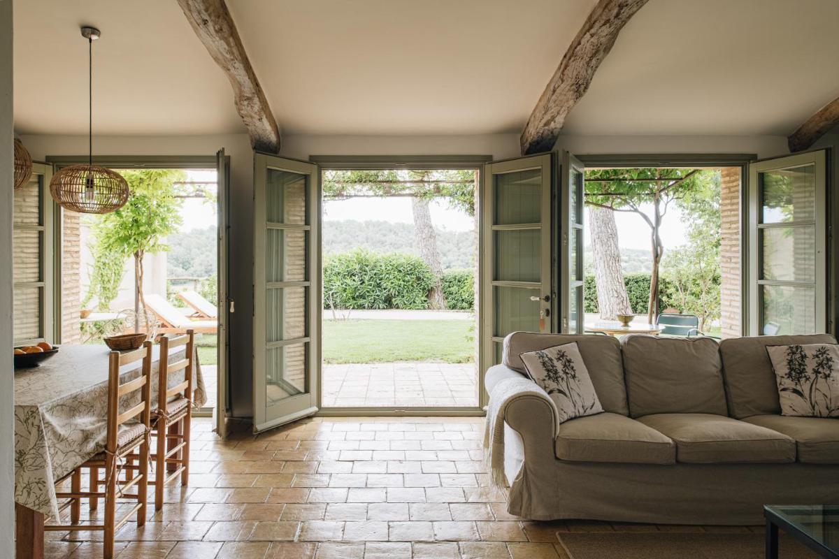 La Masia è stata restaurata con cura, mantenendo gli elementi originali (muri in pietra, travi in legno, pavimenti in cotto) e integrandoli con un design contemporaneo, minimalista e sostenibile. Le camere sono spaziose e decorate con un gusto rustico-chic, con grandi letti e bagni moderni, garantendo un rifugio di pace assoluta.