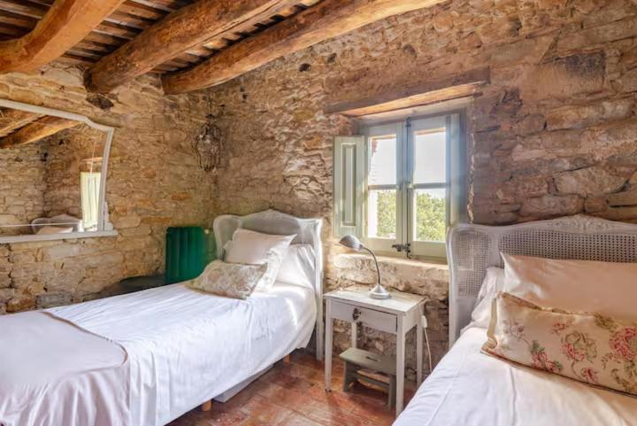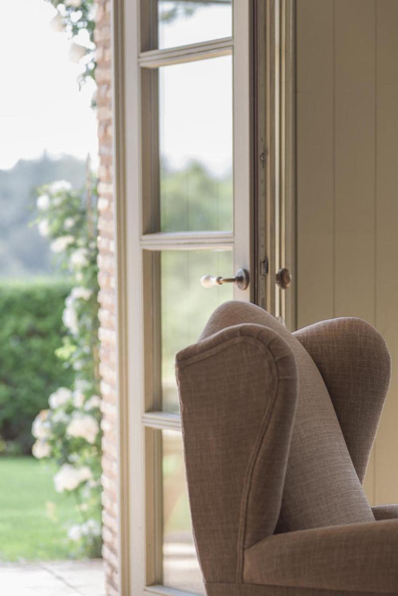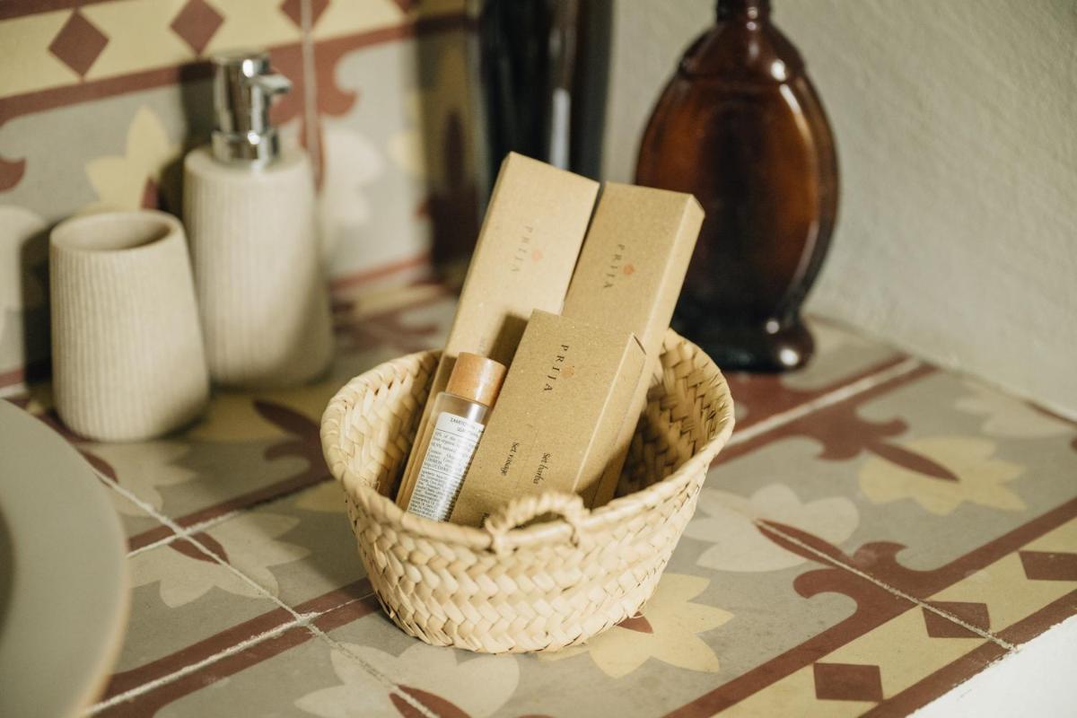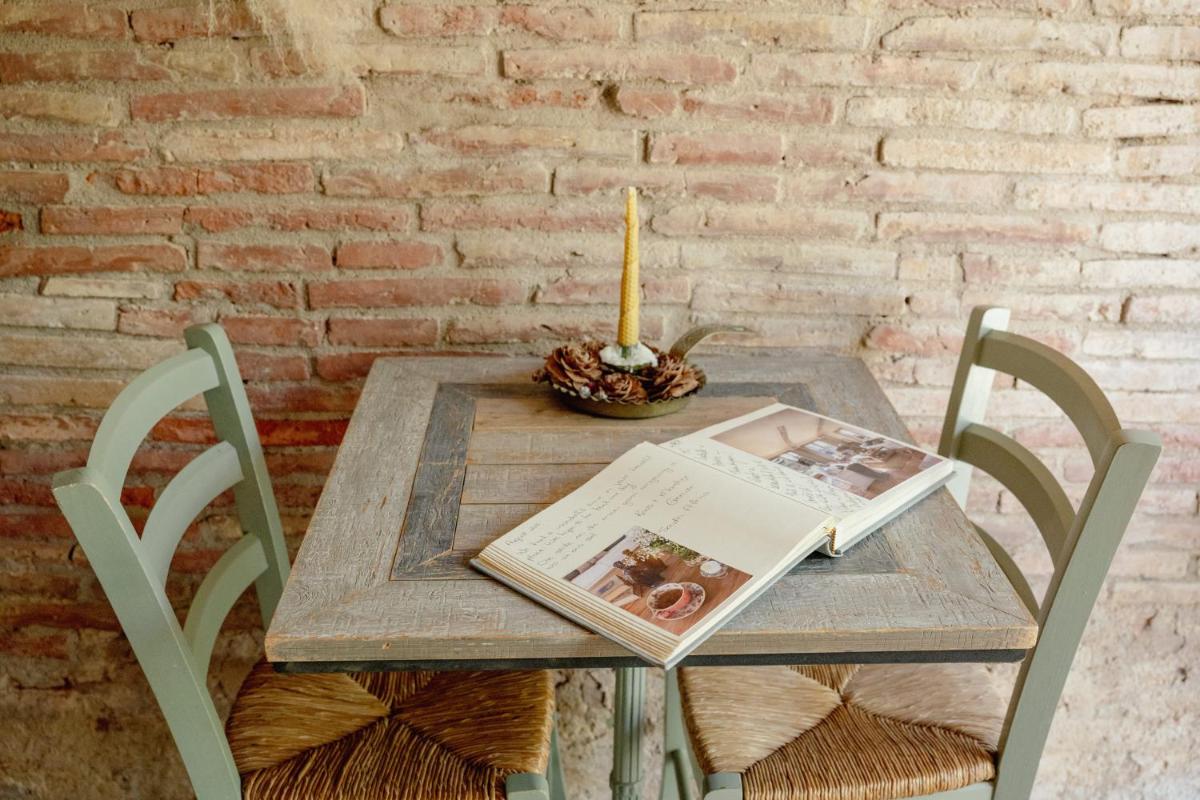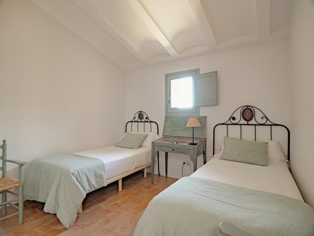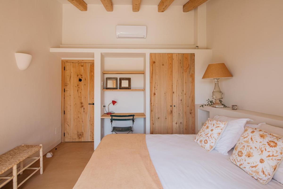La Masia è stata restaurata con cura, mantenendo gli elementi originali (muri in pietra, travi in legno, pavimenti in cotto) e integrandoli con un design contemporaneo, minimalista e sostenibile. Le camere sono spaziose e decorate con un gusto rustico-chic, con grandi letti e bagni moderni, garantendo un rifugio di pace assoluta.