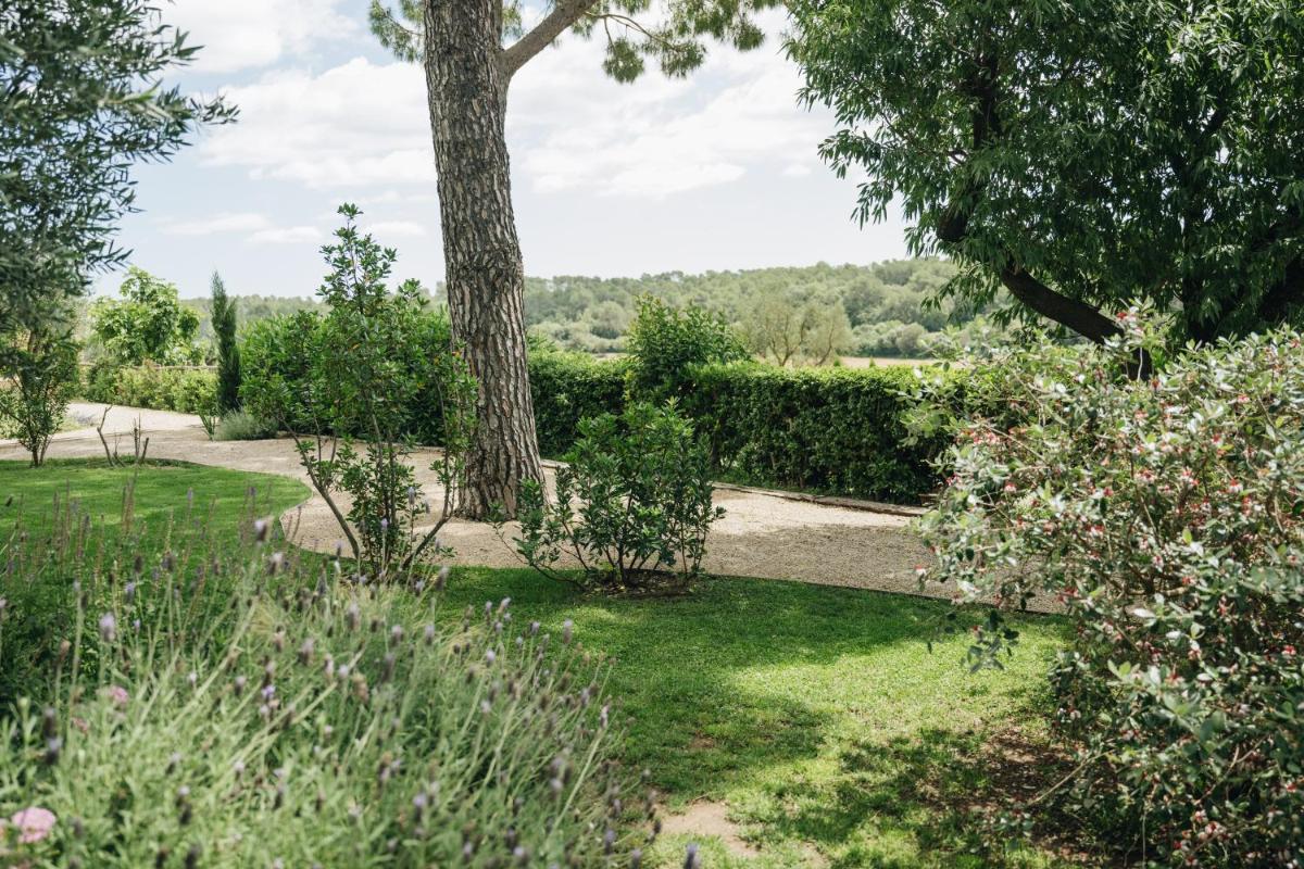 Can Bassa è immerso in vasti giardini e campi agricoli. Dispone di due piscine esterne: una tradizionale e una biologica/naturale (natural swimming pool) che utilizza sistemi di filtrazione vegetale. L'ambiente esterno è perfetto per la lettura, il relax e lunghe passeggiate tra gli ulivi e gli alberi da frutto.