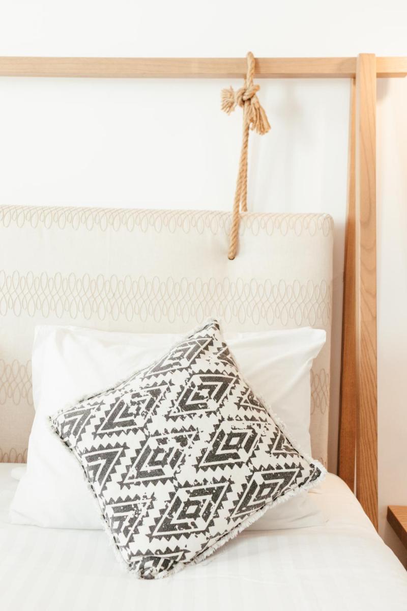 Le suite sono arredate con gusto squisito, combinando elementi minimalisti con tocchi di lusso e dettagli artigianali locali. Ogni unità è progettata per massimizzare lo spazio e la luce naturale, offrendo spesso una terrazza o un balcone privato. L'uso prevalente di colori neutri e legno chiaro crea un'atmosfera rilassante e luminosa, tipica dell'ospitalità greca più autentica.