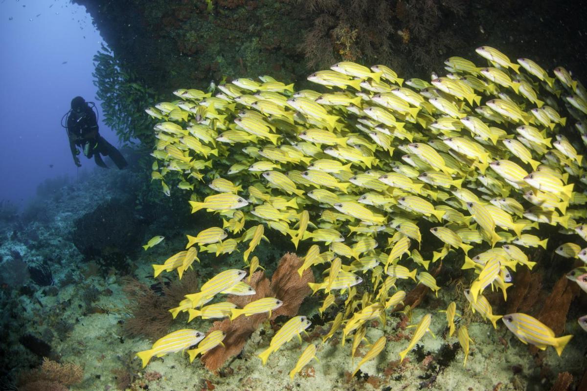 Vantando una barriera corallina domestica (house reef) premiata, il resort offre opportunità di snorkeling eccezionali a pochi passi dalla riva o dalla terrazza della propria villa. Inoltre, un relitto giapponese accessibile in acque poco profonde si trova nelle immediate vicinanze, rendendolo un paradiso per i sub e gli amanti del mare.