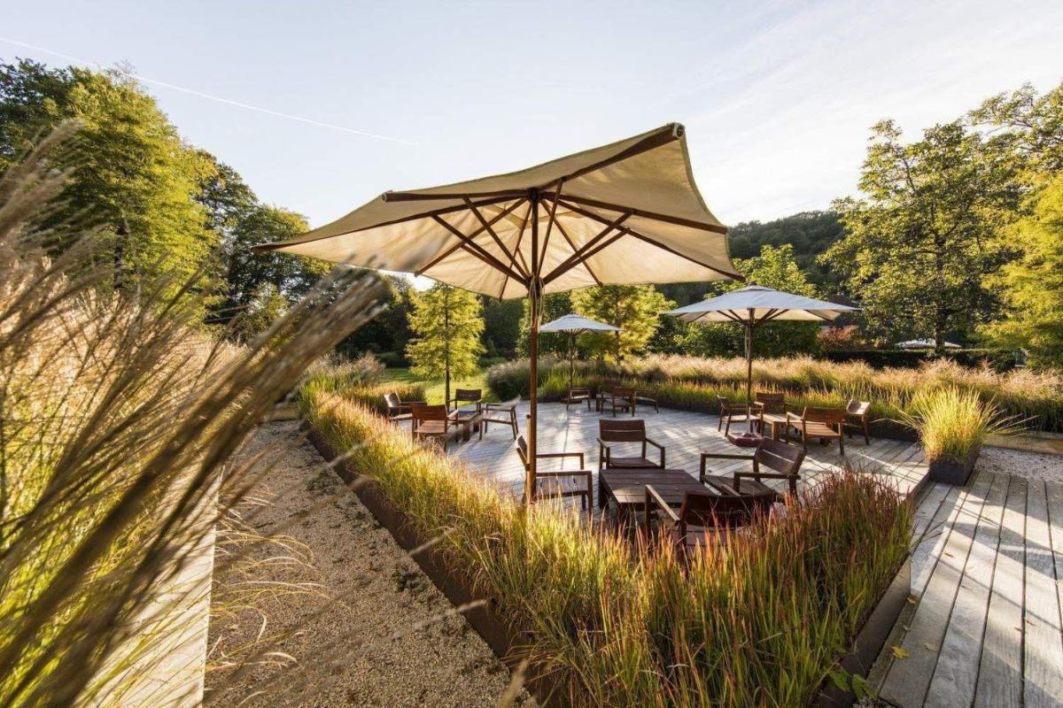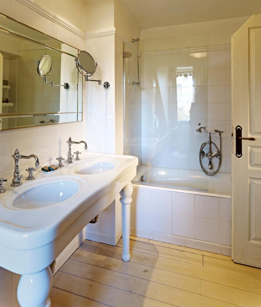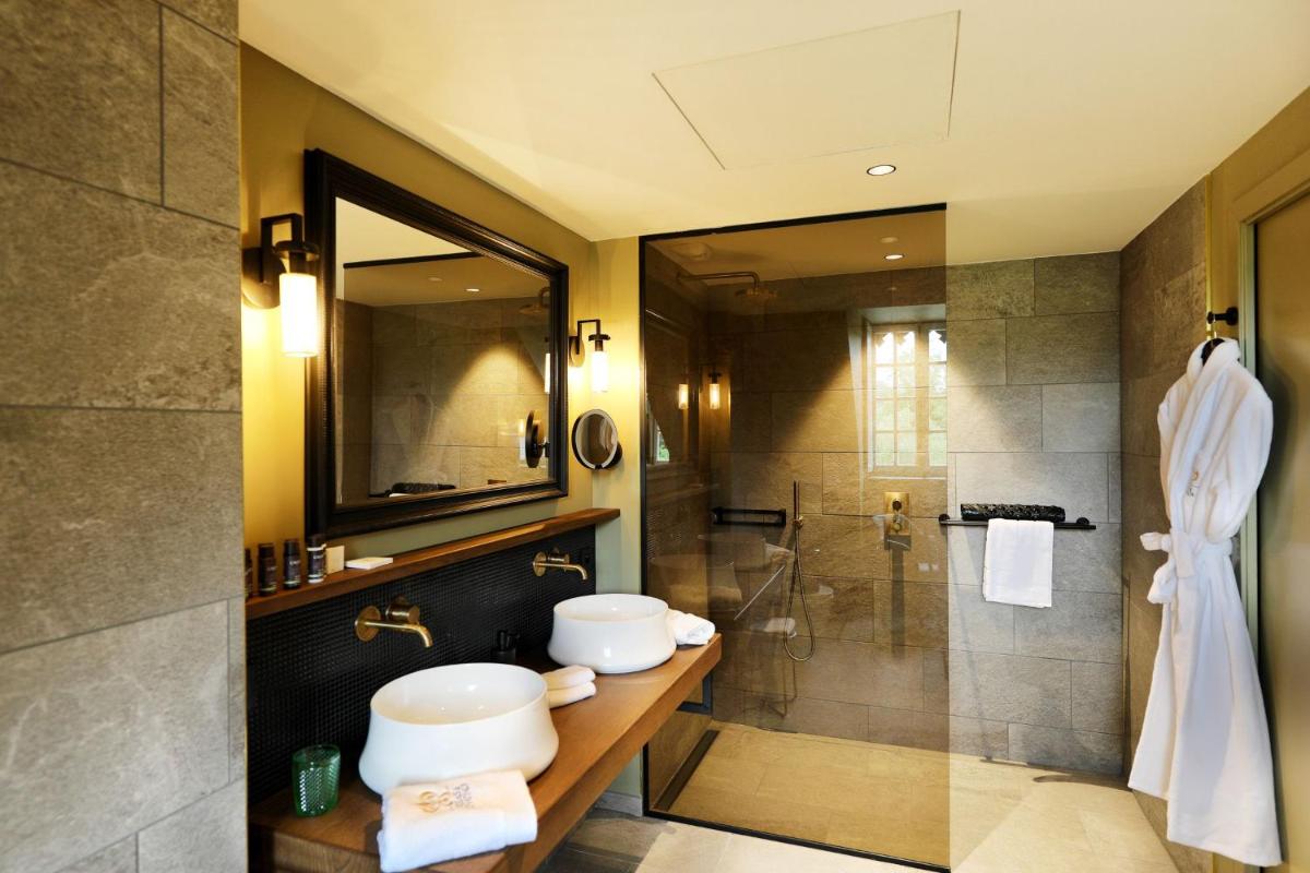 L'architettura classica e gli interni curati riflettono la ricca storia del castello. Le camere e le suite sono arredate in uno stile che evoca l'epoca, con tessuti pregiati e mobili d'antiquariato, garantendo al contempo dotazioni moderne di lusso. Molte offrono una vista rilassante sul parco e sulla pittoresca valle.