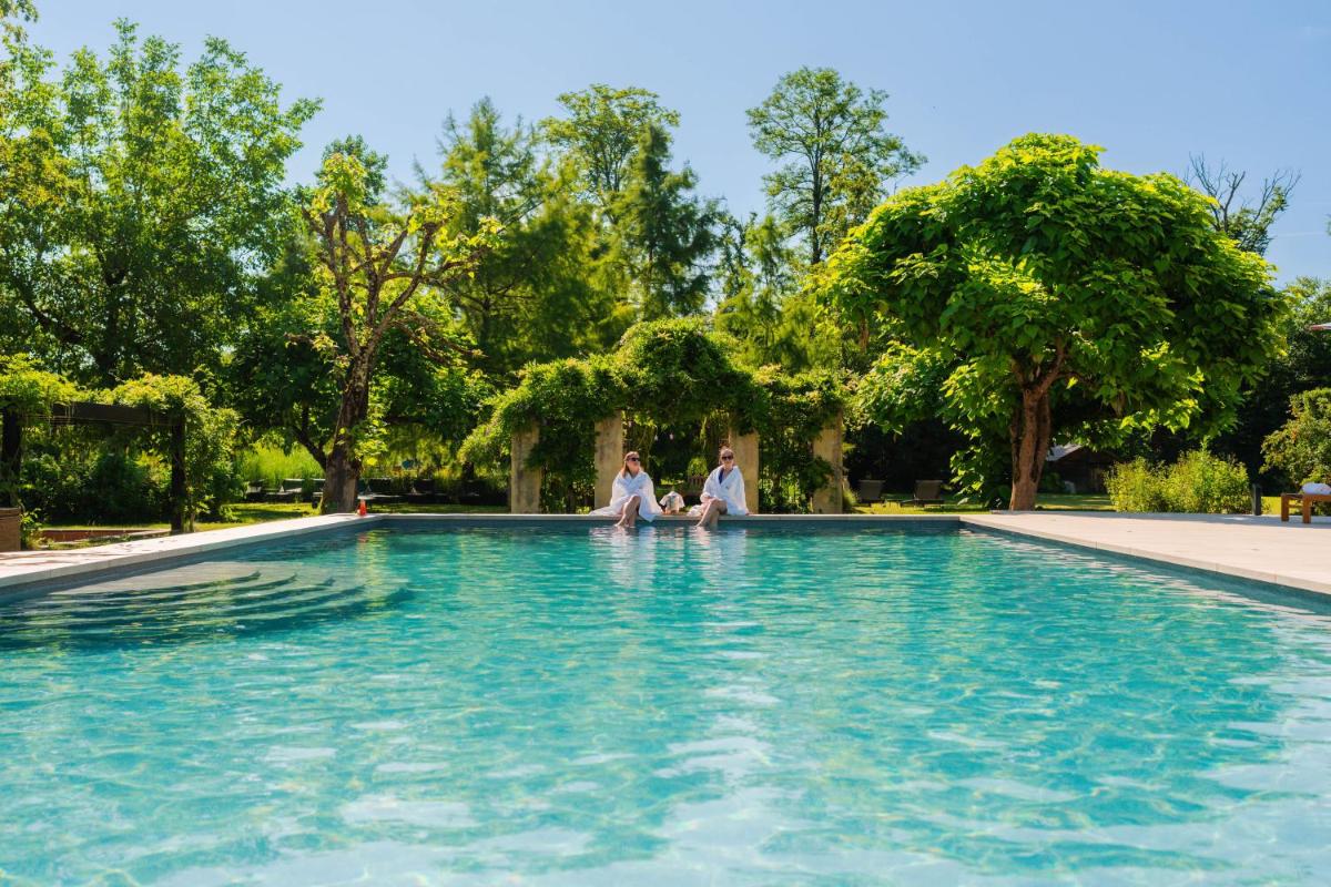 Il parco, con i suoi alberi secolari, invita a lunghe passeggiate meditative. Gli ospiti possono godere della piscina esterna, un'oasi di frescura in estate, e delle numerose attività offerte dal fiume Loue. La tranquillità e la bellezza del paesaggio giurassico sono i veri lussi offerti dal Chateau De Germigney.