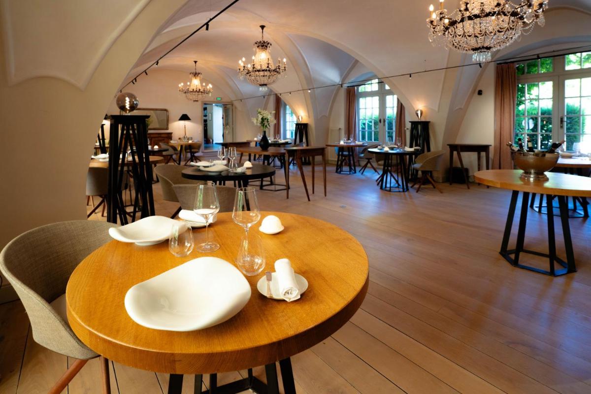 Il ristorante gastronomico del castello celebra i sapori del Giura e della Franca Contea, con una cucina creativa che utilizza ingredienti freschi e locali. L'ambiente elegante, con vista sui giardini, rende l'esperienza culinaria un momento clou del soggiorno, esaltato da una selezione di vini locali e francesi.