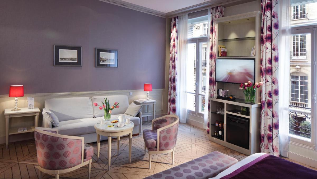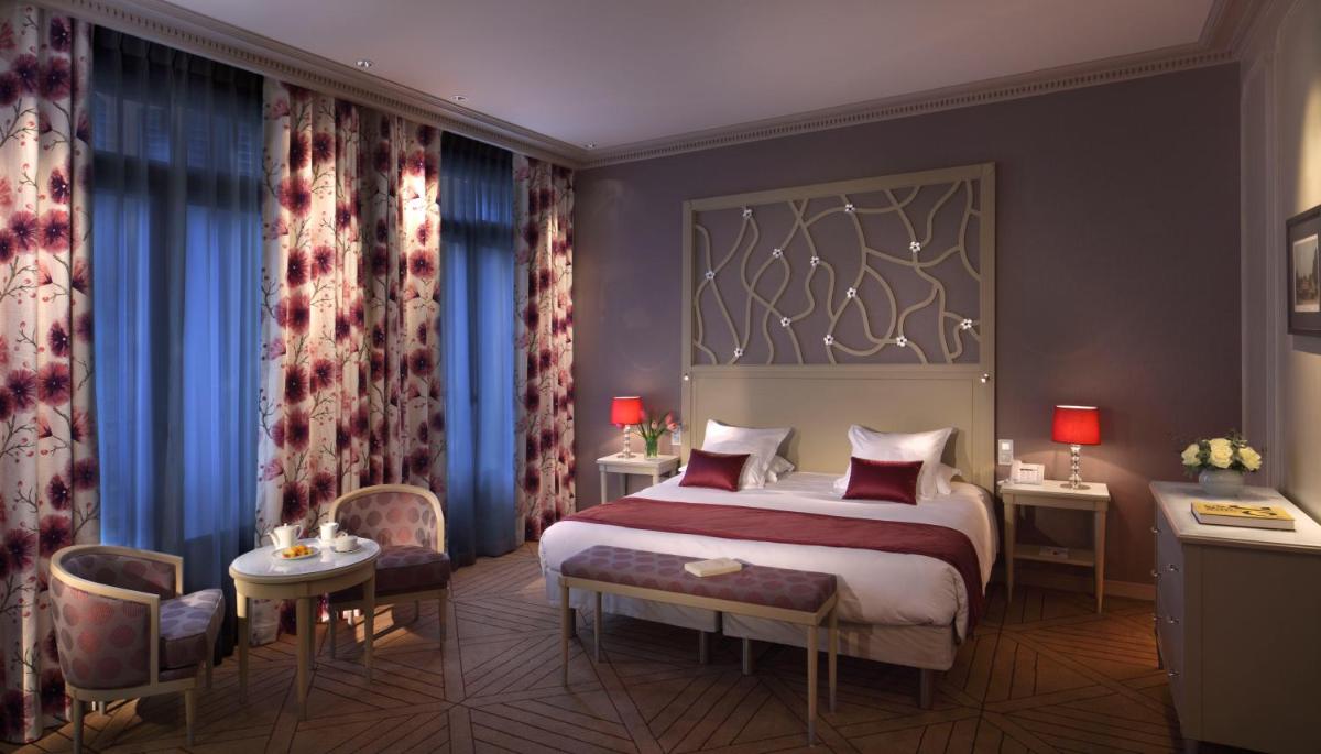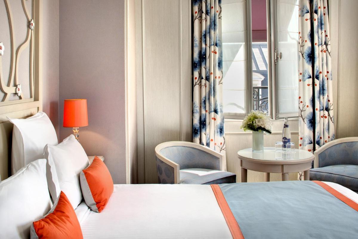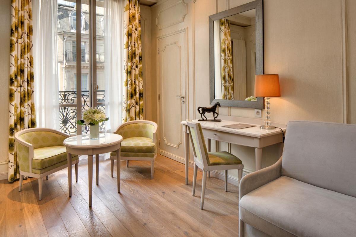 Le camere e le suite sono state progettate per offrire il massimo comfort e luminosità. Molte di esse si affacciano sulla tranquilla Rue Pierre Charron o sul cortile interno, fornendo un rifugio silenzioso dal trambusto degli Champs-Élysées. Ogni alloggio è dotato di servizi moderni pur mantenendo un design classico e lussuoso.