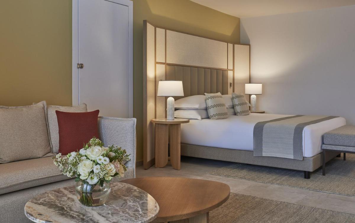 Il resort dispone di oltre 100 camere e suite completamente rinnovate, caratterizzate da uno stile moderno, pulito ed elegante, con richiami ai colori della macchia mediterranea. Le sistemazioni sono distribuite in diversi blocchi e la maggior parte offre balconi o terrazze private con vista sulla laguna o sul mare. Le suite più esclusive, come la Suite Chia, vantano ampi spazi living e servizi dedicati per garantire il massimo del comfort e della privacy.