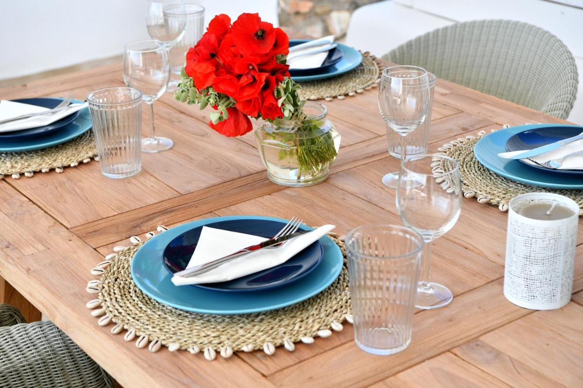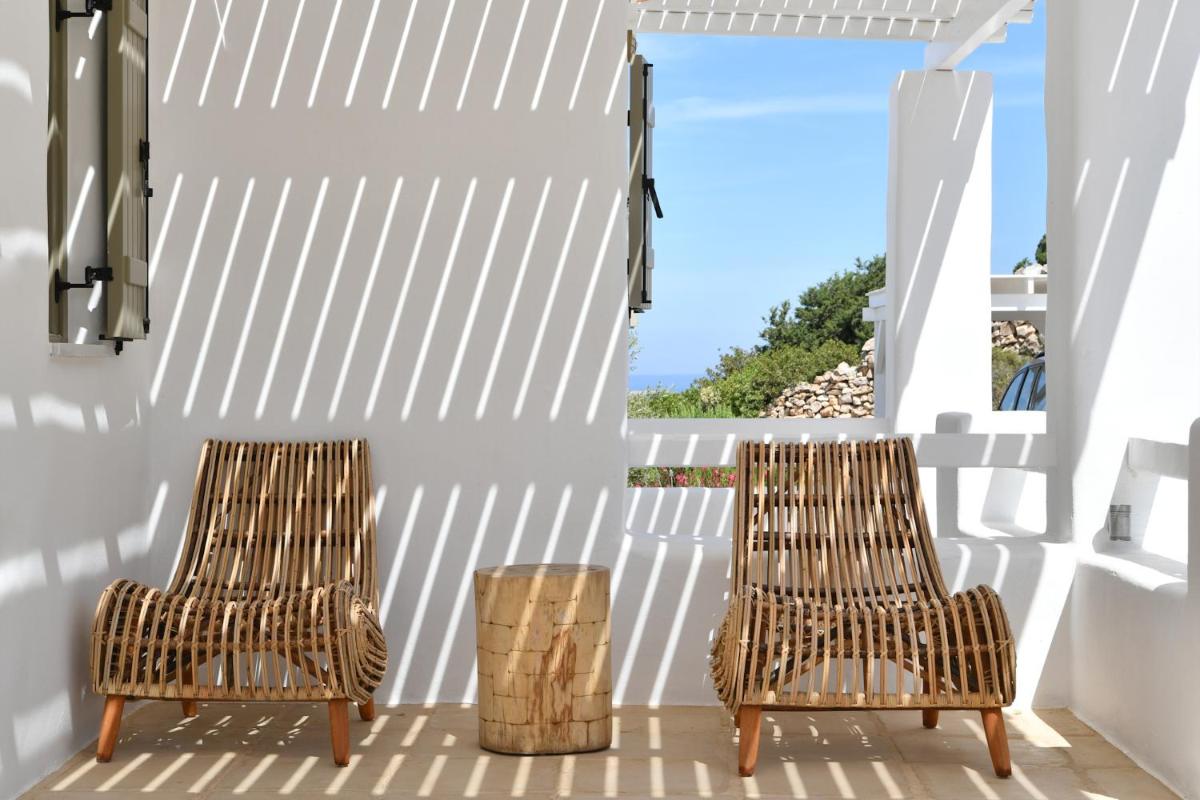 Le ville si distinguono per un design minimalista che reinterpreta la tradizione cicladica con linee pulite e volumi scultorei. Gli interni sono ampi e inondati di luce naturale, caratterizzati dall'uso di pietra locale, legno pregiato e tessuti naturali. Ogni dettaglio è curato per creare un ambiente di lusso discreto, dove la semplicità diventa la massima espressione del benessere.