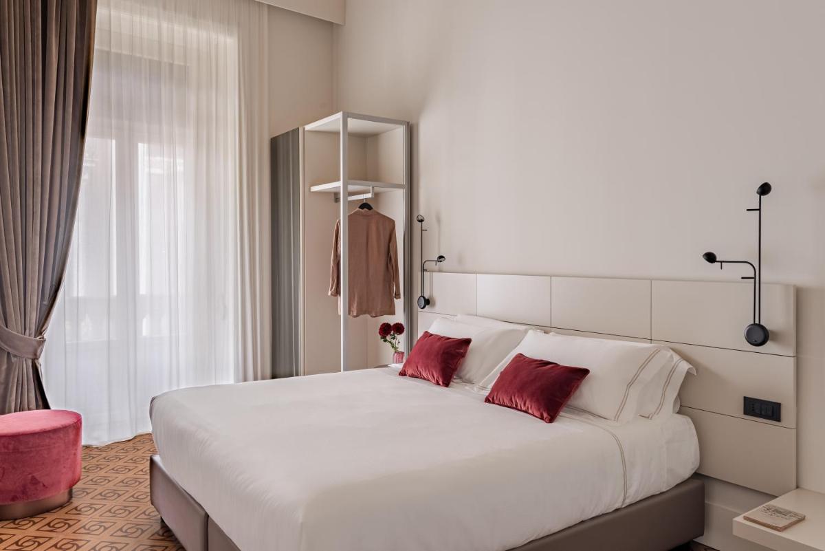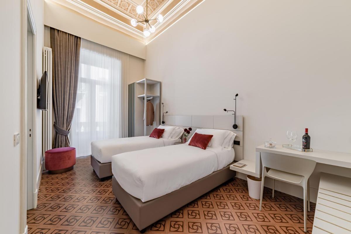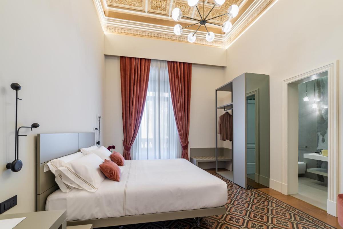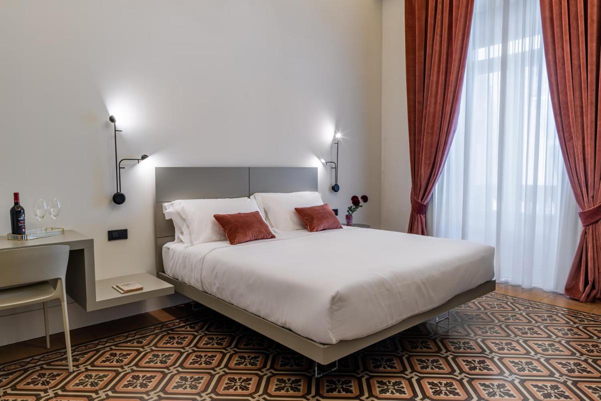 Camere luminose con balcone o scorci sui tetti barocchi; alcune con salottino o angolo lettura. Dotazioni: aria condizionata, Wi‑Fi, smart TV, minibar, cassaforte, bollitore/macchina del caffè; bagni con ampia doccia, set cortesia e asciugacapelli.