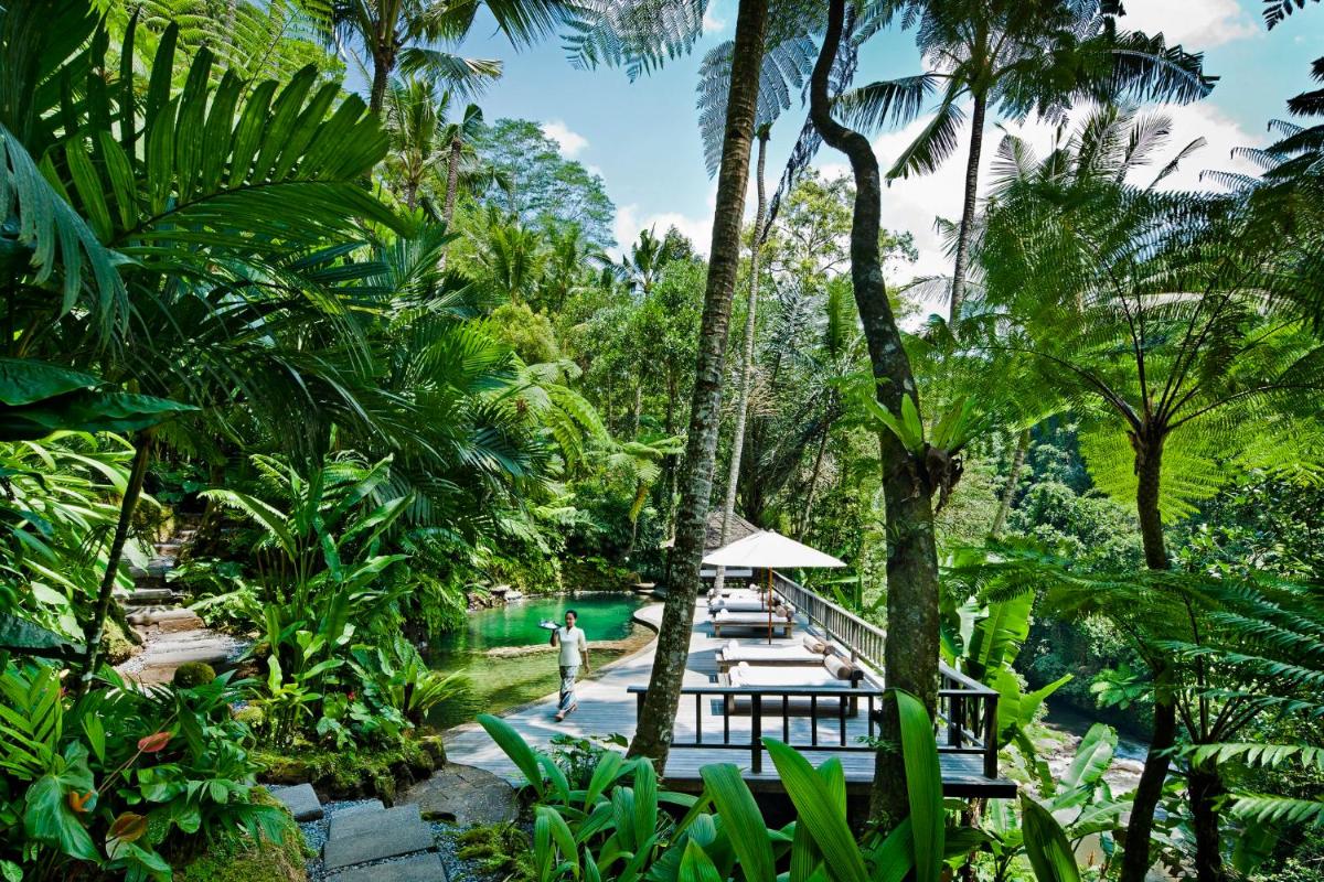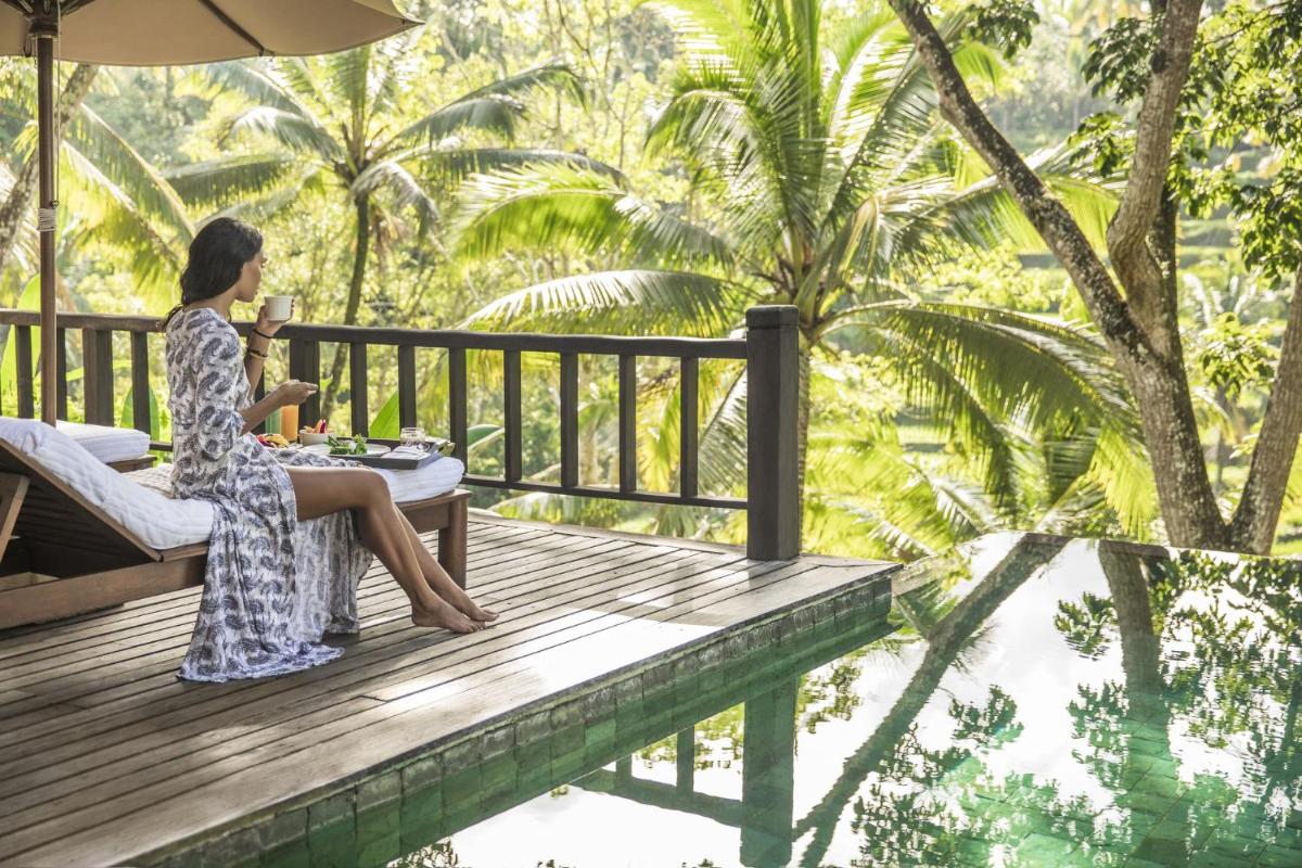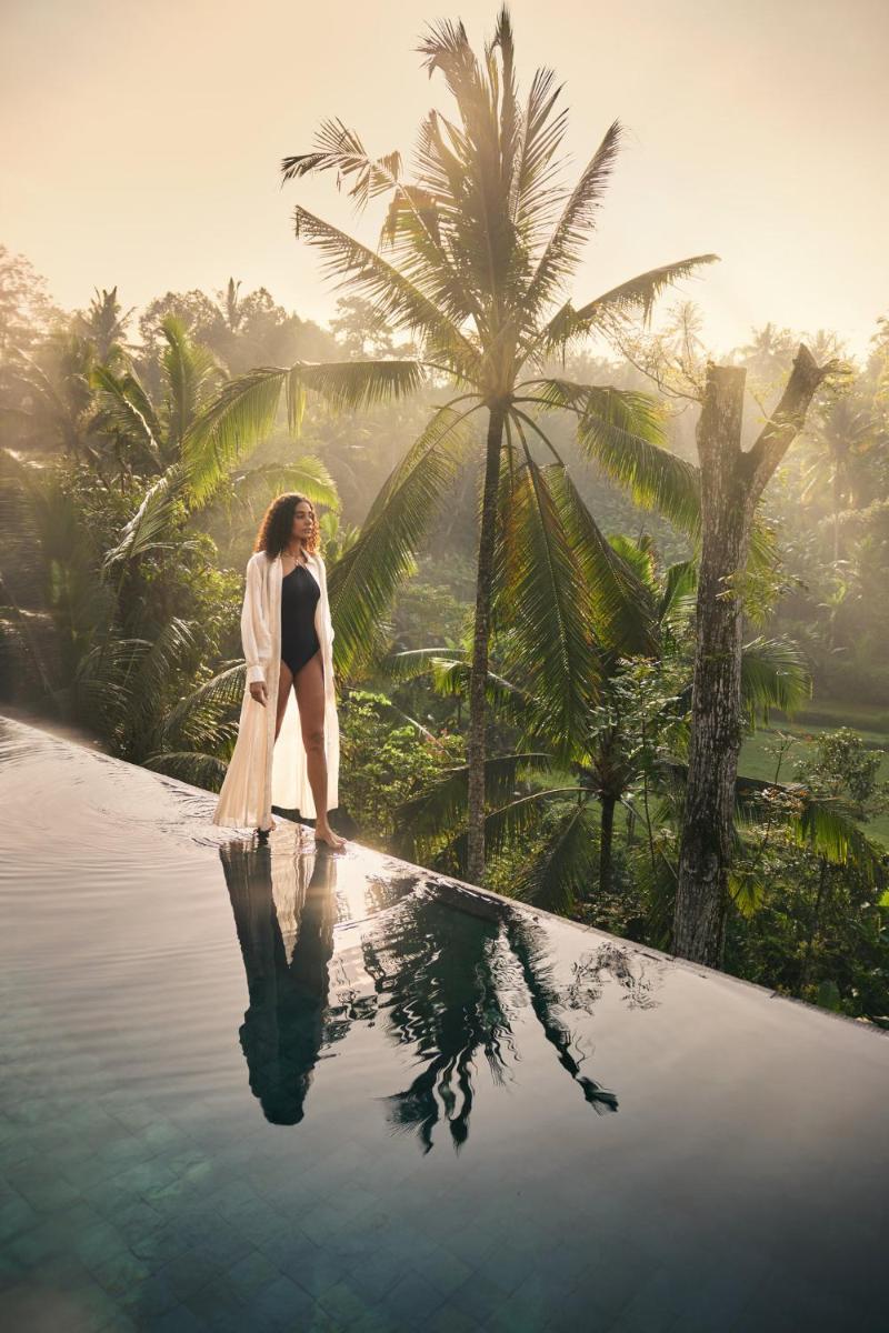 L'architettura e il design si fondono con la natura circostante, utilizzando materiali locali e rispettando l'ambiente. Le residenze e le ville private sono veri e propri rifugi di lusso, molte con piscine a sfioro private che si affacciano sulla valle del fiume Ayung, garantendo una privacy ineguagliabile e un'immersione completa nella tranquillità della giungla.