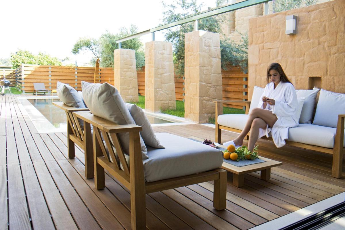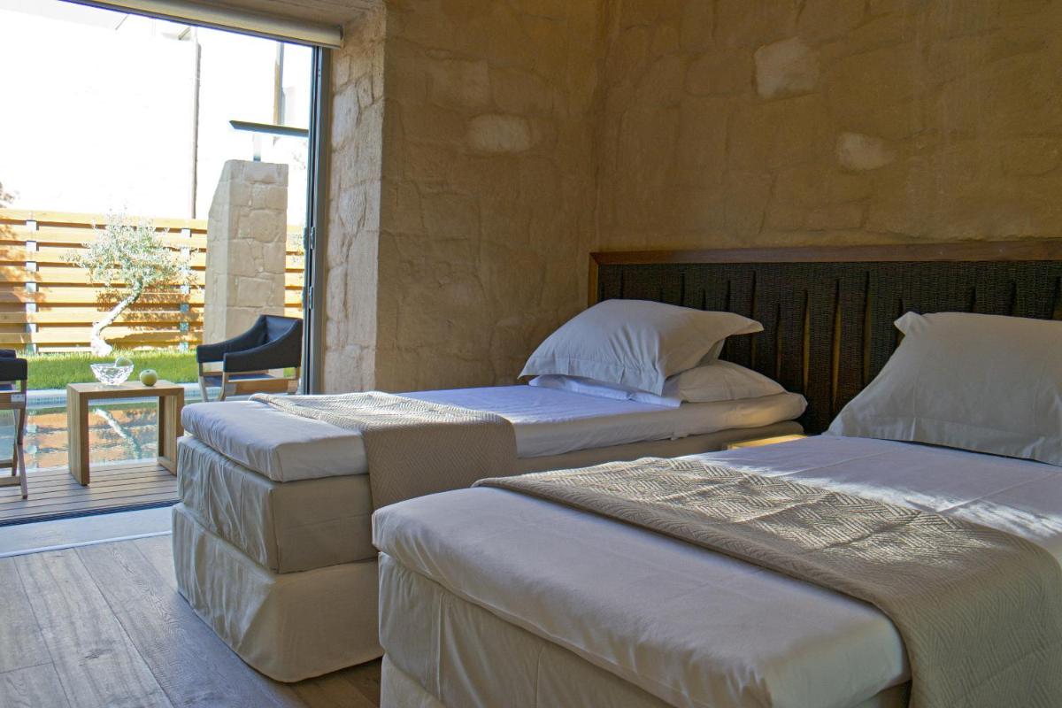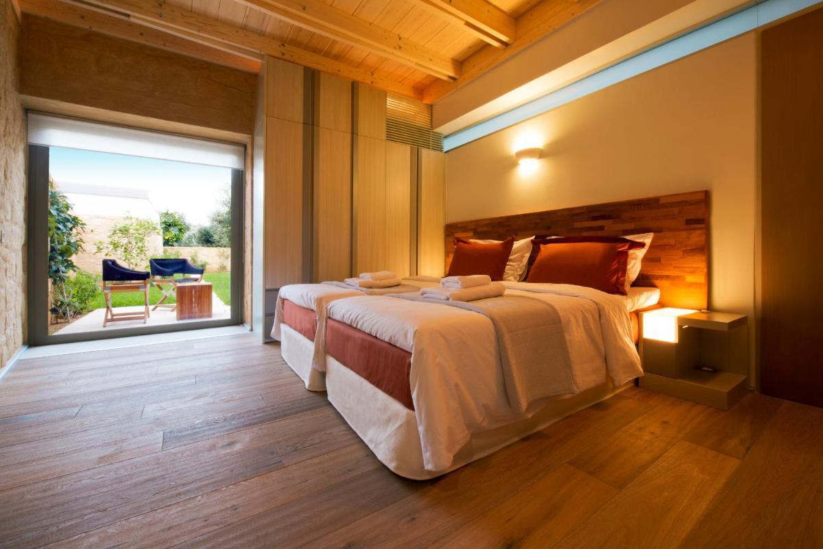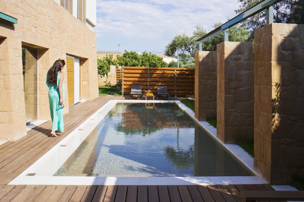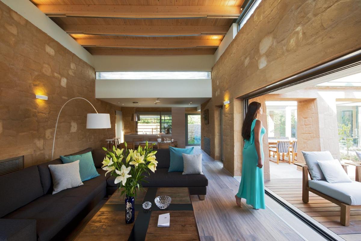 Le ville sono state progettate con un'attenzione maniacale all'estetica e alla funzionalità. Caratterizzate da pietra locale, legno e ampie vetrate, massimizzano la luce naturale e offrono viste panoramiche sui rigogliosi uliveti e sul Mar Egeo. Ogni unità dispone di una piscina privata a sfioro e di ampi giardini e terrazze, ideali per cene all'aperto e momenti di assoluta privacy.