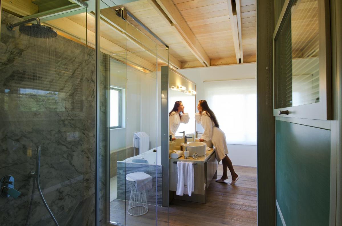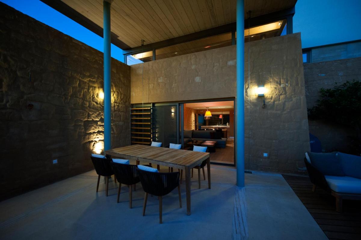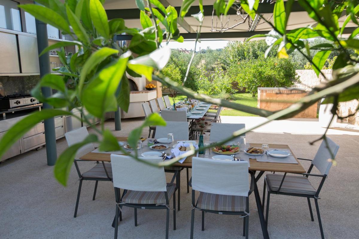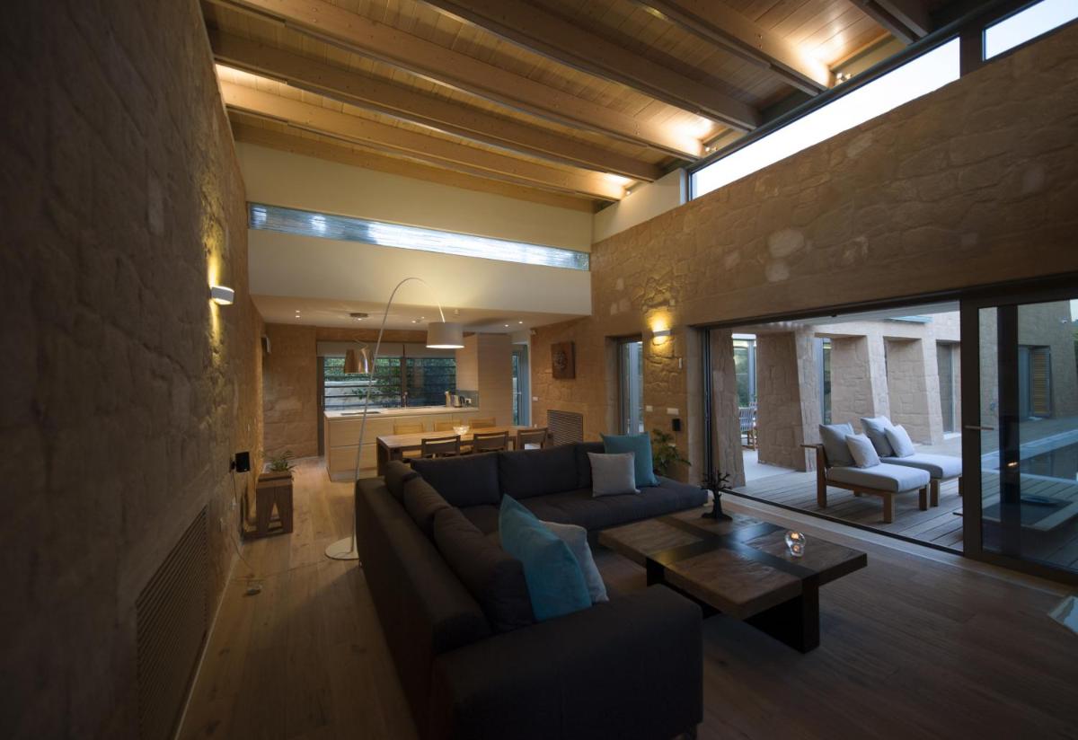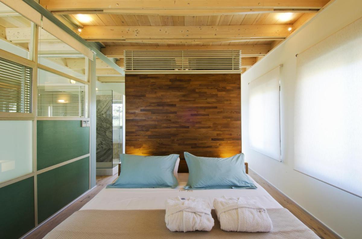 Le ville sono state progettate con un'attenzione maniacale all'estetica e alla funzionalità. Caratterizzate da pietra locale, legno e ampie vetrate, massimizzano la luce naturale e offrono viste panoramiche sui rigogliosi uliveti e sul Mar Egeo. Ogni unità dispone di una piscina privata a sfioro e di ampi giardini e terrazze, ideali per cene all'aperto e momenti di assoluta privacy.