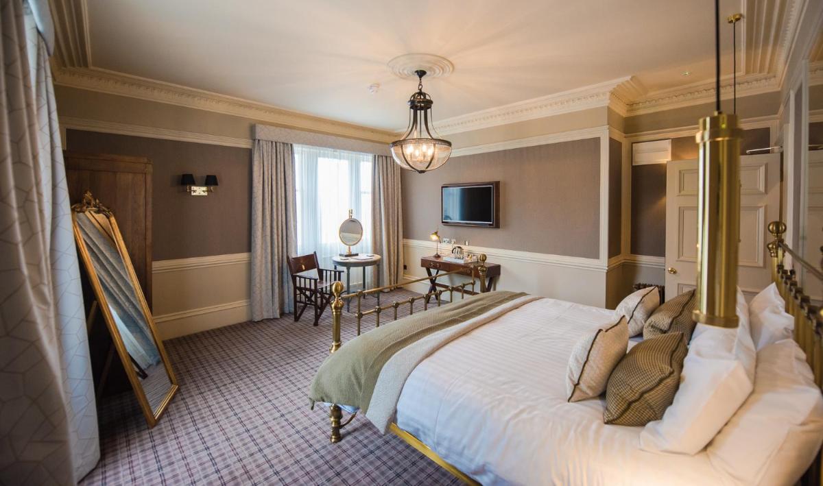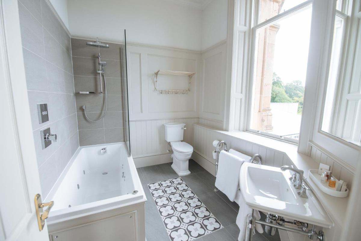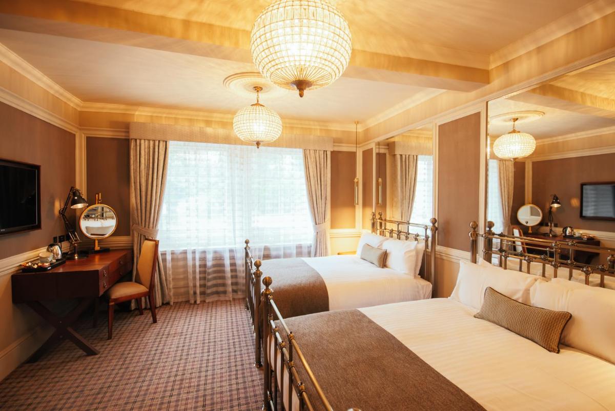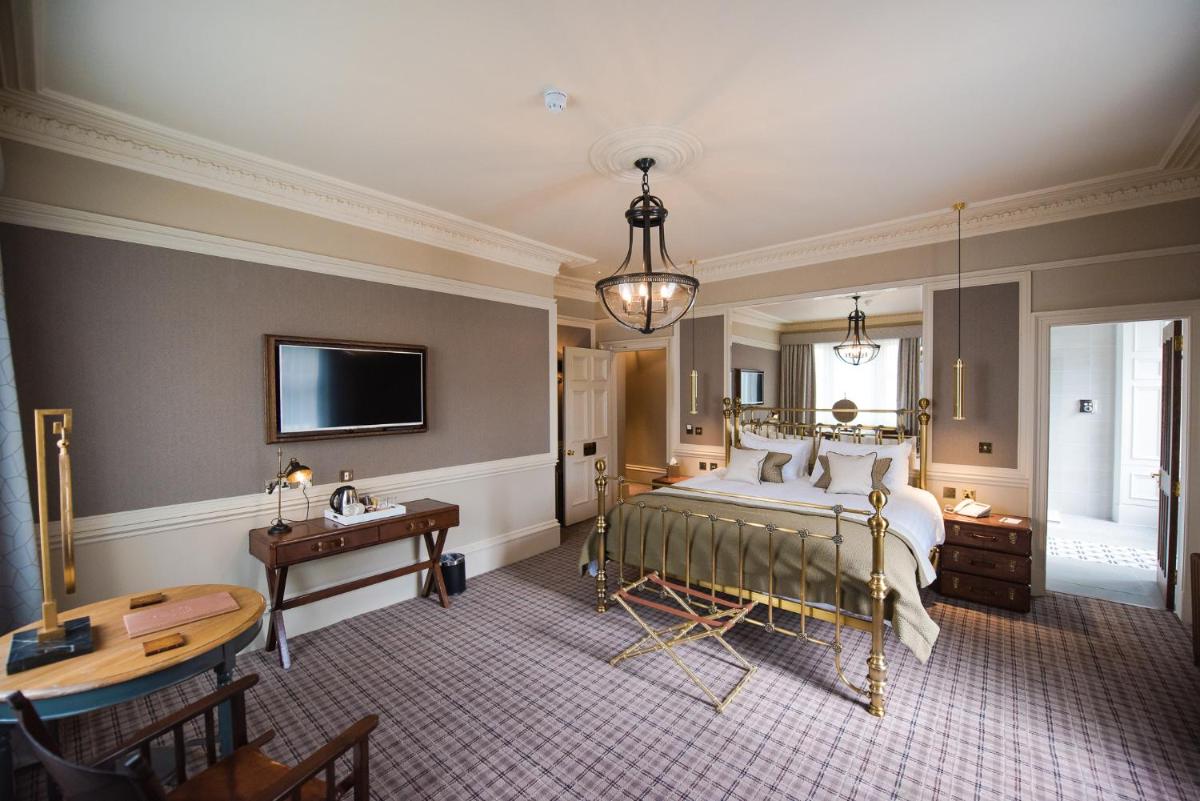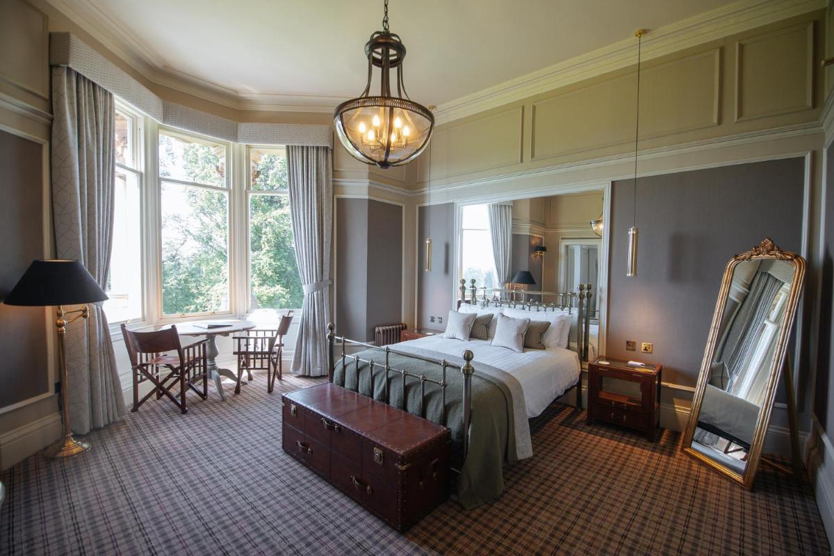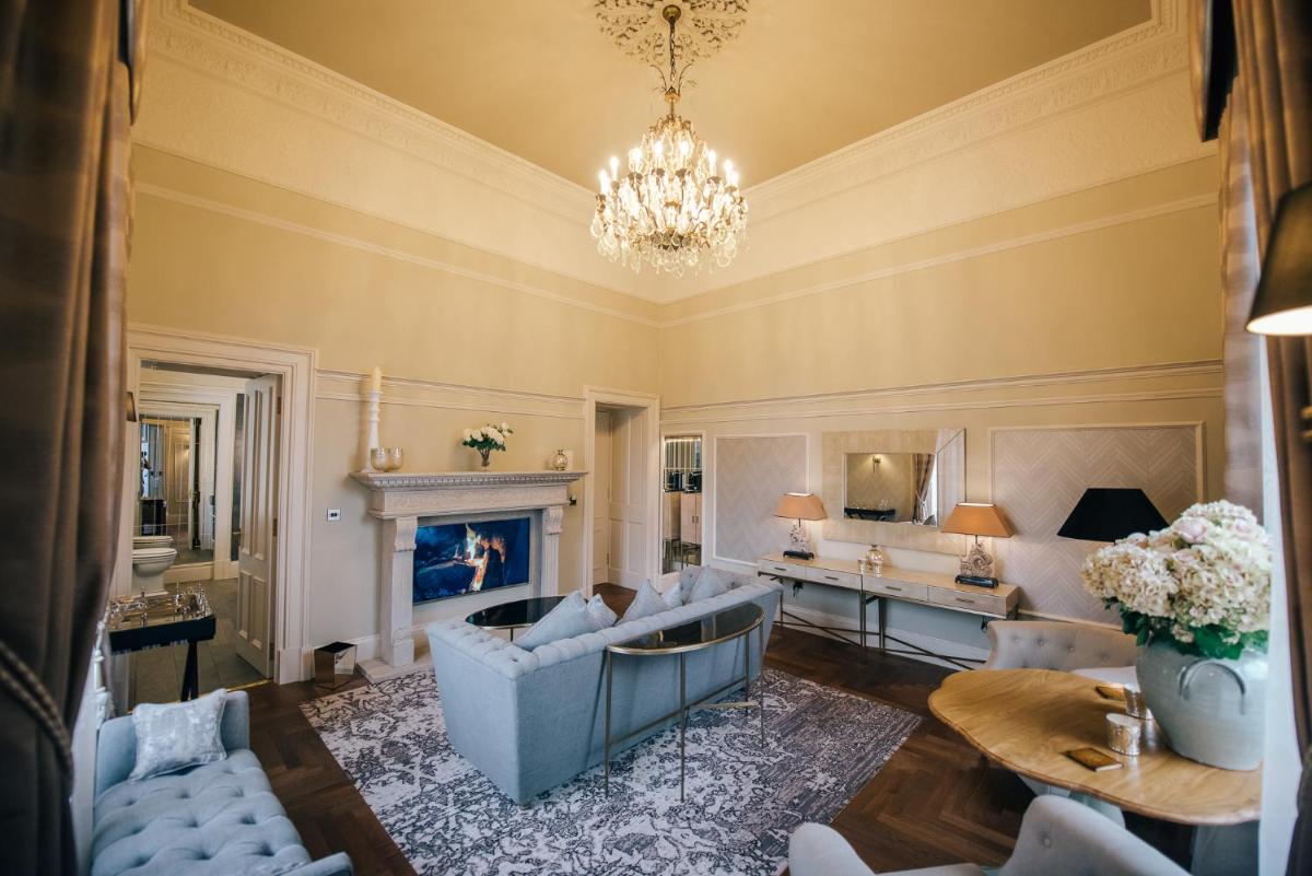 Ogni camera e suite è stata progettata in modo unico, con un tema distintivo che spazia dal classico al contemporaneo opulento. Molte vantano dettagli originali del castello, come caminetti in pietra e soffitti alti, abbinati a comfort moderni. Le suite più lussuose includono vasche idromassaggio e aree lounge private, garantendo un soggiorno di massimo sfarzo.